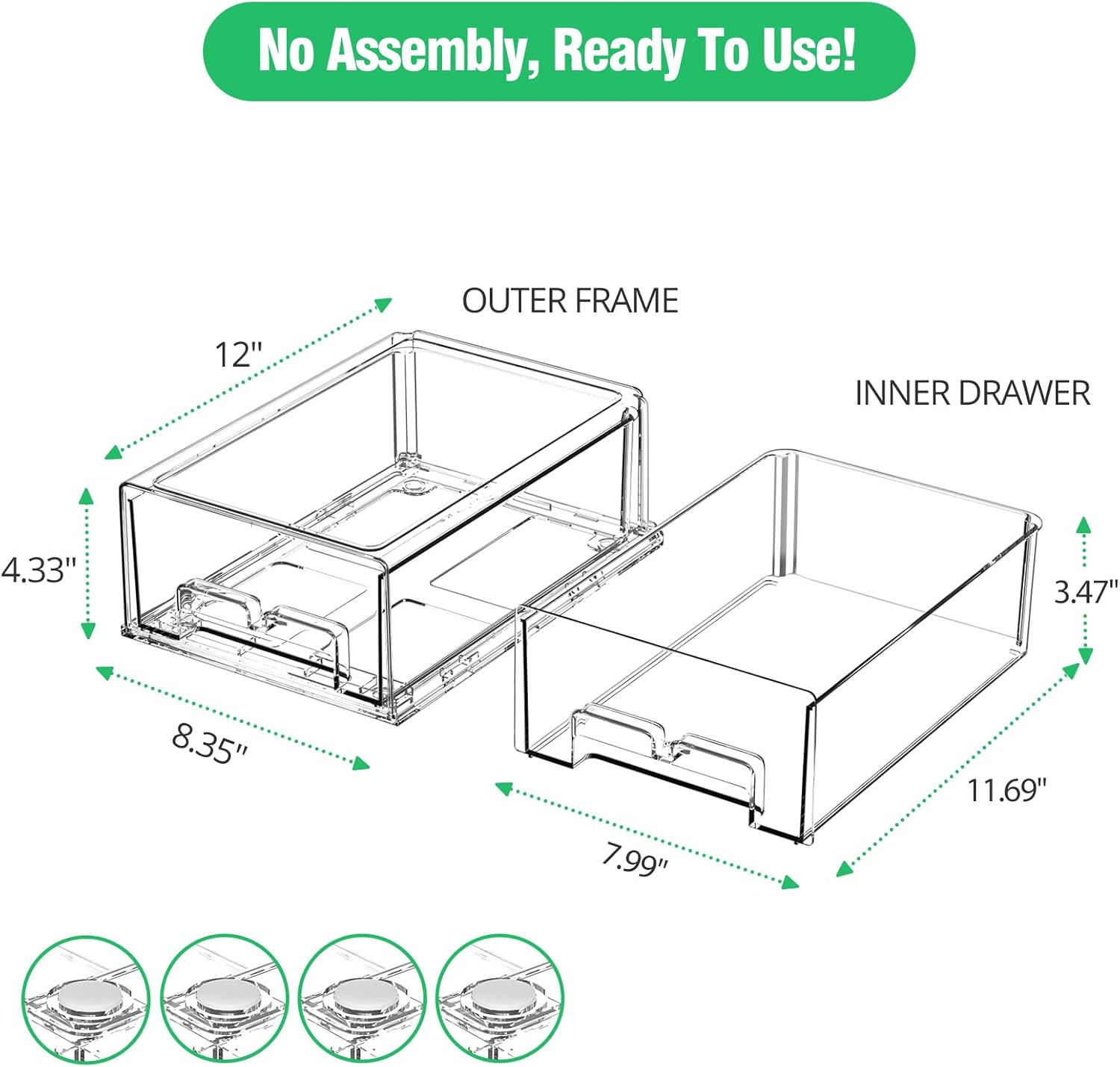 2 Pack Refrigerator Drawers - Fridge Organizer Bins Stackable Storage Drawers, Clear Refrigerator Organizing Containers Pull Out Drawer for Fruit, Vegetable Storage and Keep Fresh
