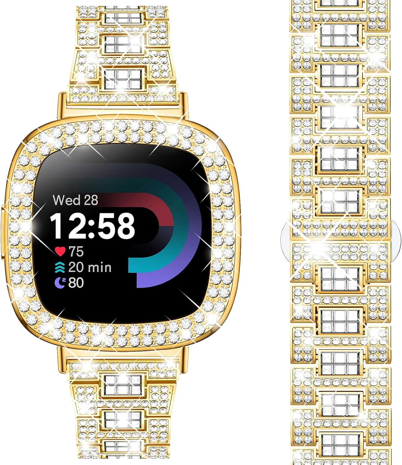 Dsytom Bling Stylish Watch Band Compatible With Fitbit Versa 4, Sense 2, Versa 3, Sense - Cute Strap With Rhinestone Protective Case Cover for Women