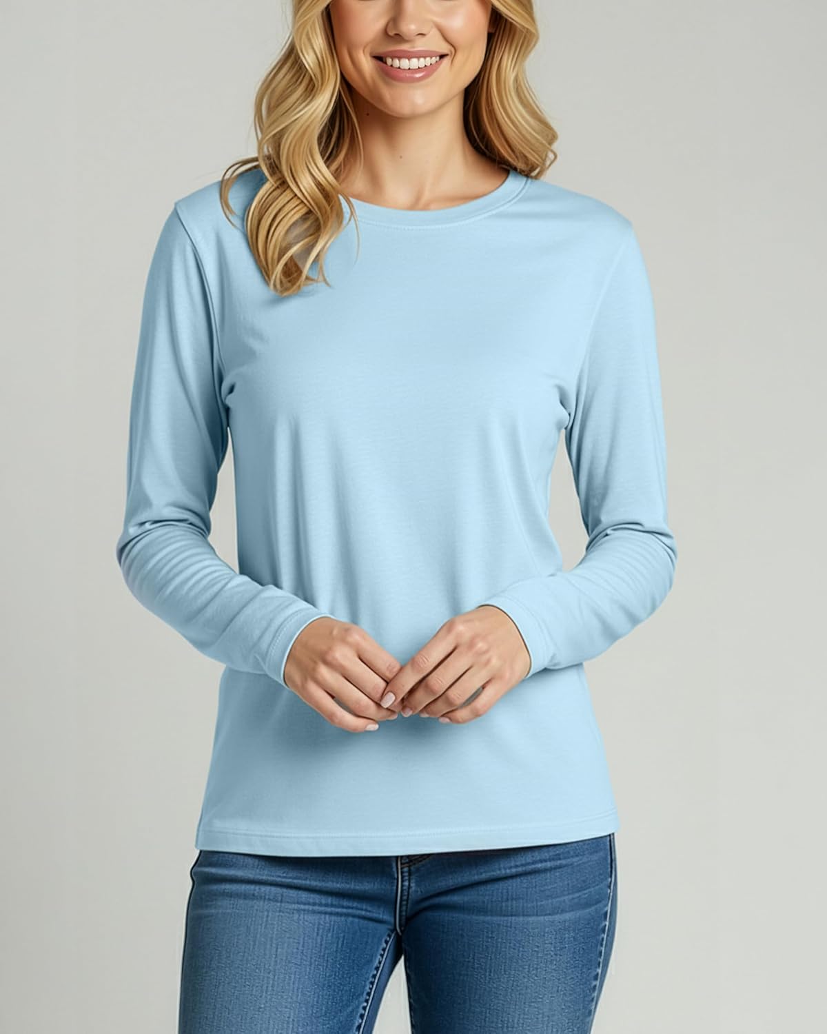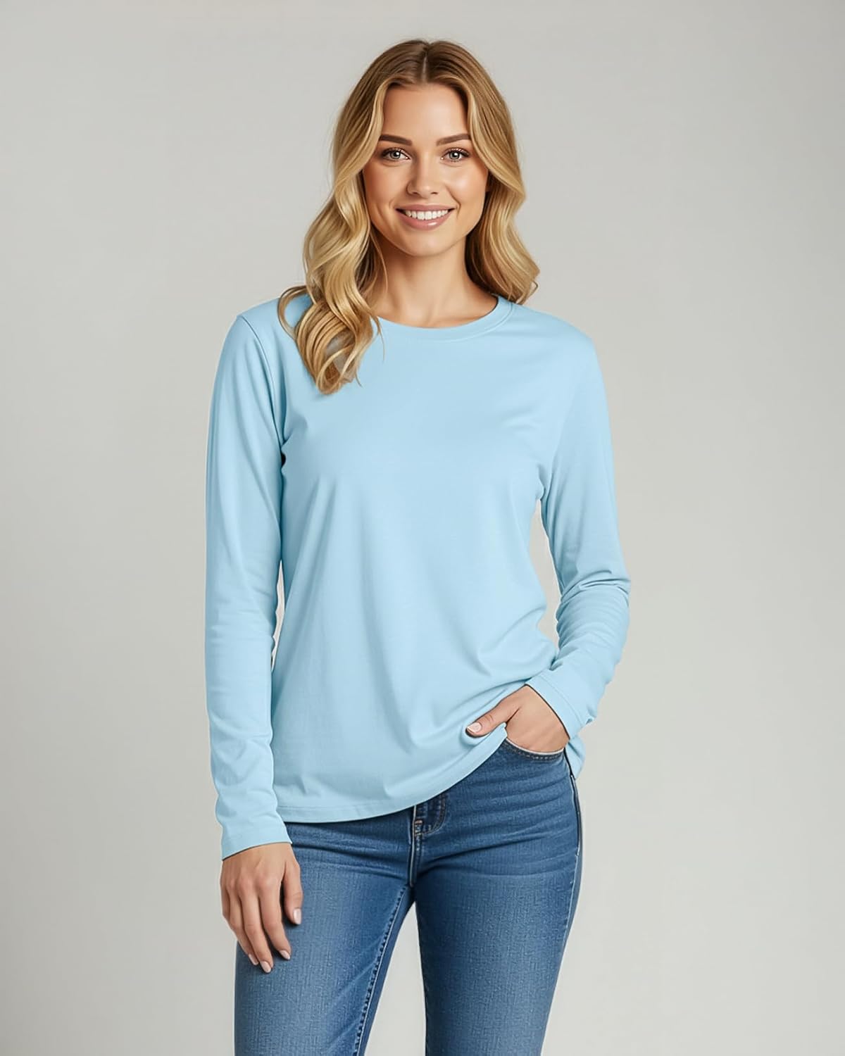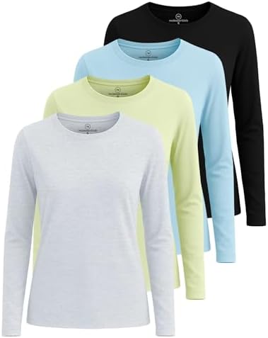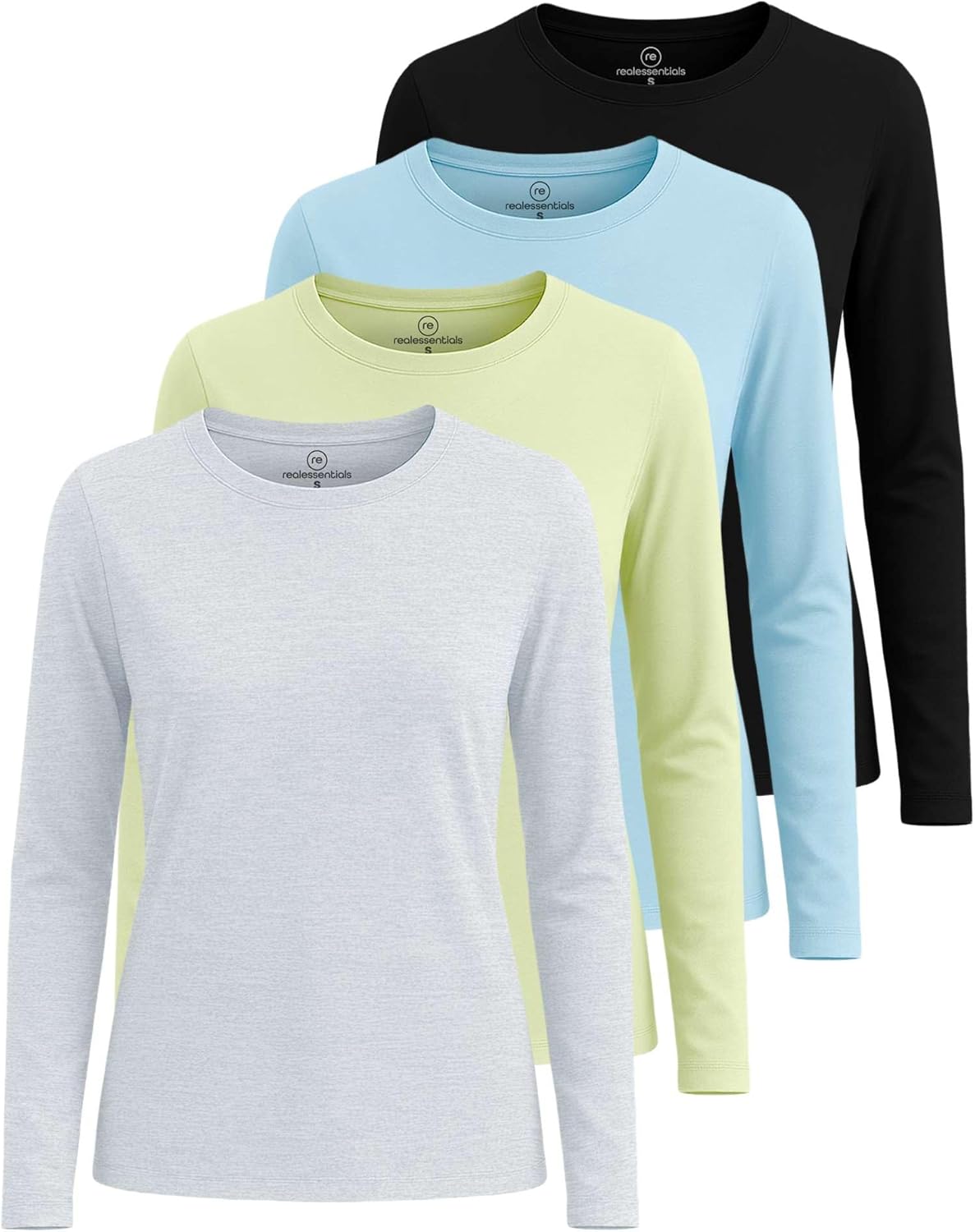 Real Essentials 4 Pack: Women's Cotton Classic-Fit Long-Sleeve Crewneck T-Shirt (Available in Plus Size)