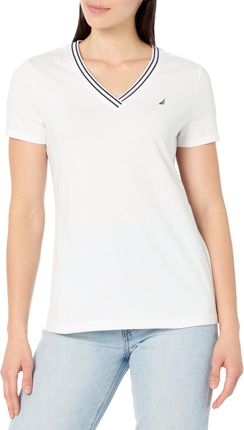 This Nautica Jeans Women's T-shirt is a short sleeve tee with a v-neckline