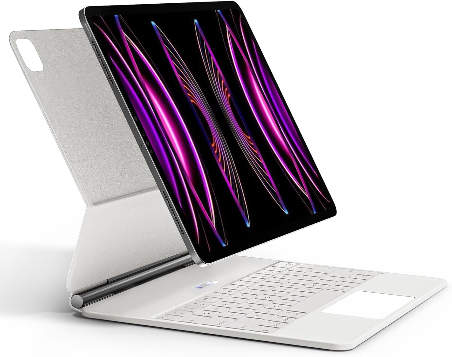 APPS2Car Magic Keyboard for iPad Pro 12.9, iPad Keyboard Case, Built-in Trackpad, Floating Cantilever Stand Wireless Backlit Keyboard Folio for iPad Pro 12.9 inch 2022 6th/5th/4th/3rd Gen-White