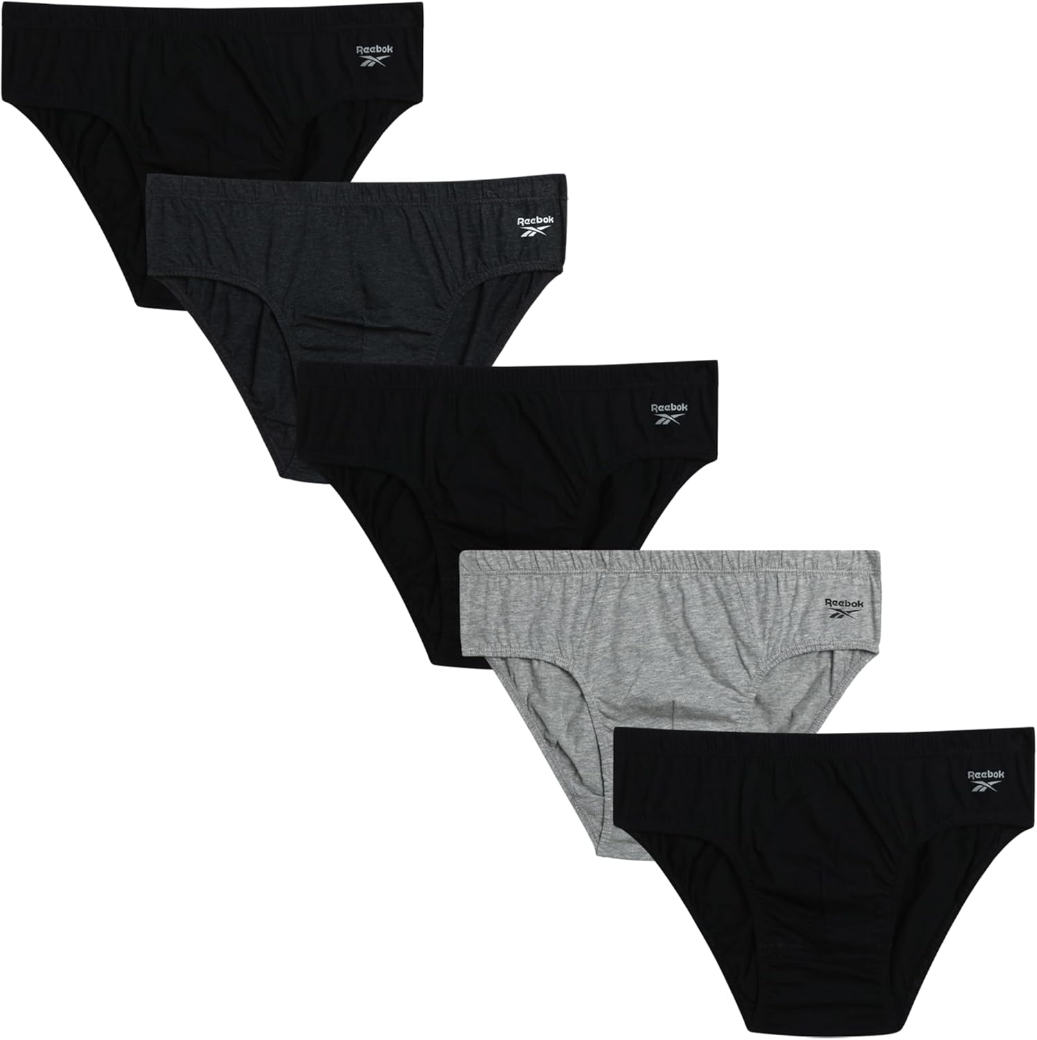 Reebok Mens Low Rise Briefs - 5 Pack Soft Mens Cotton Underwear Briefs with Supportive Contour No Fly Pouch for Everyday Wear