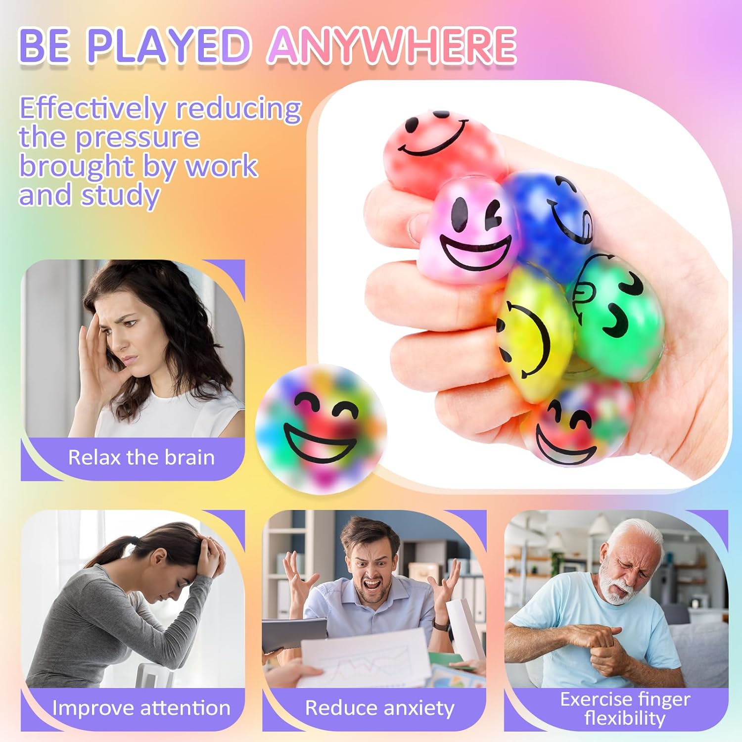 🎁【Perfect Gift & Party Favorite】Our stress relieving balls are placed in a beautiful gift box, and these fidget stress balls are perfect as birthday gifts, carnivals. These mini stress balls are a huge surprise and can be used as basket fillers parties, Halloween, Christmas, and Easter, keep happy all day !