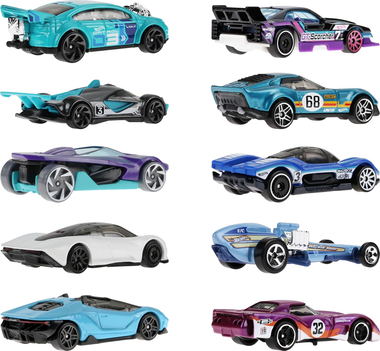 Sumérgete en una colección Hot Wheels con este paquete que presenta 10 coches de carreras que los niños y coleccionistas anhelan
