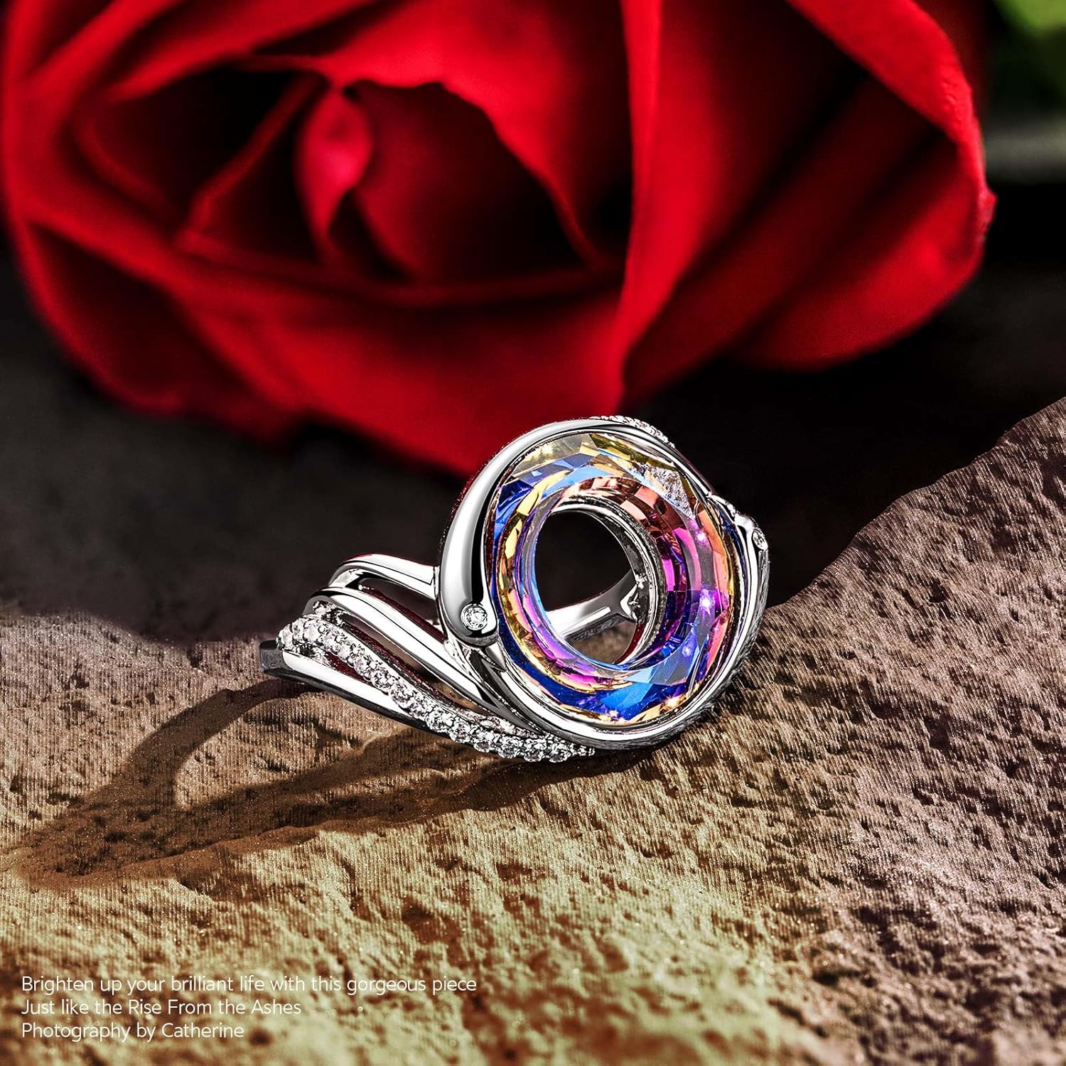 Kate Lynn "Rise From the Ashes Adjustable Phoenix Rings Made with Crystals from Austria, Packaged with Jewelry Box, Birthday Gift Christmas Gift for Women, Symbol of Luck and Renewal