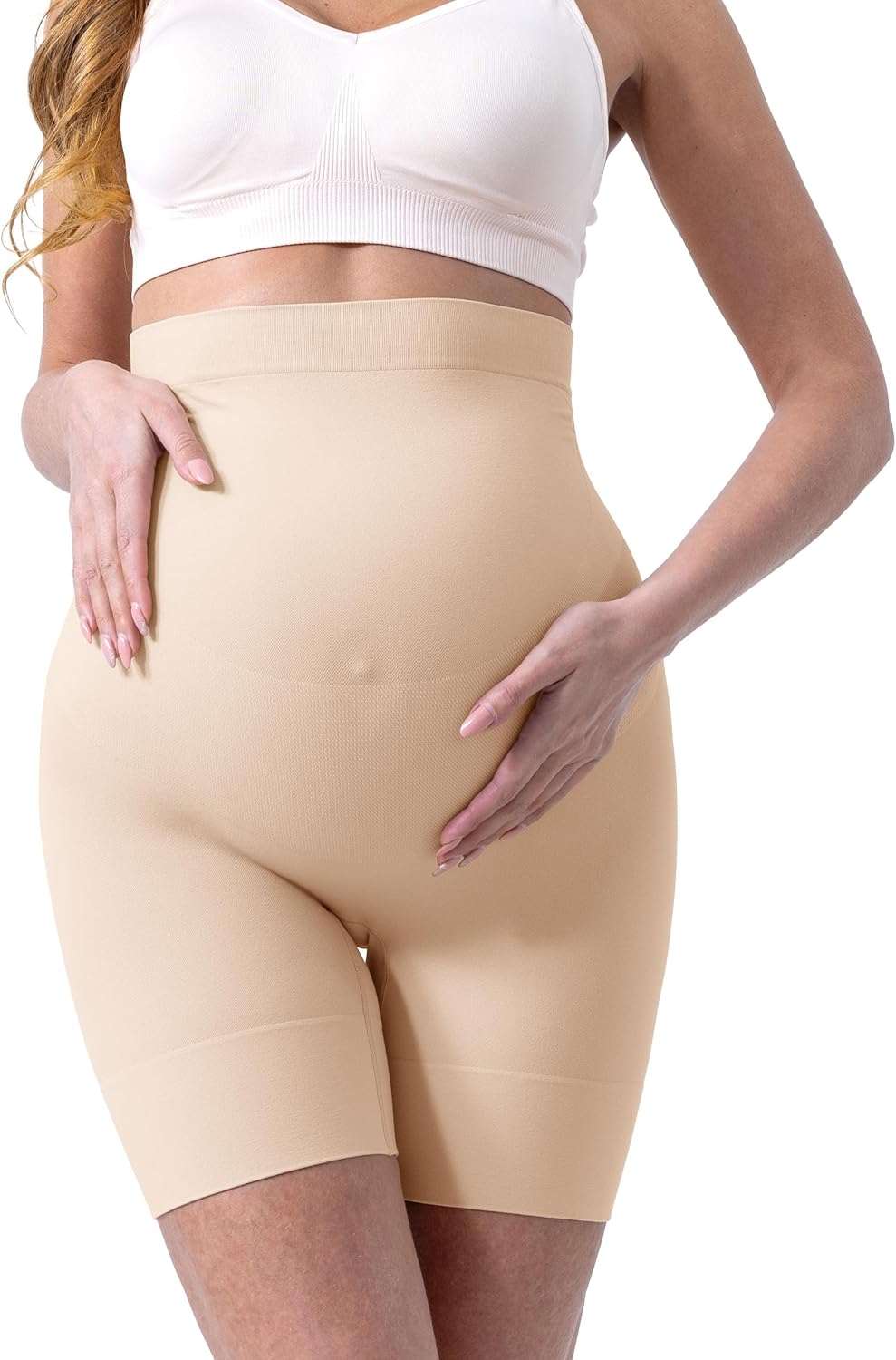 SUNNYBUY Women's Maternity Shapewear for Dresses, Seamless Mid-Thigh Pregnancy Underwear Over Belly Support