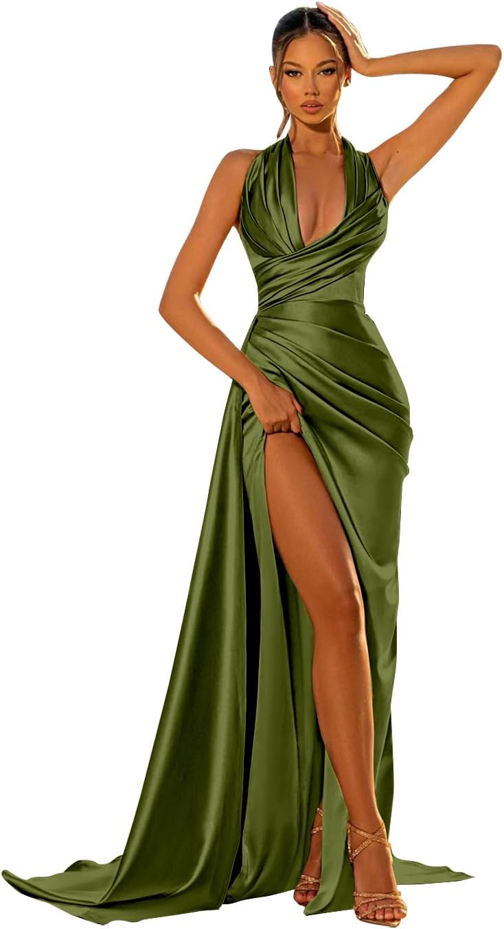 Halter Mermaid Prom Dresses 2025 Long with Slit Ruched Corset Formal Dress for Women
