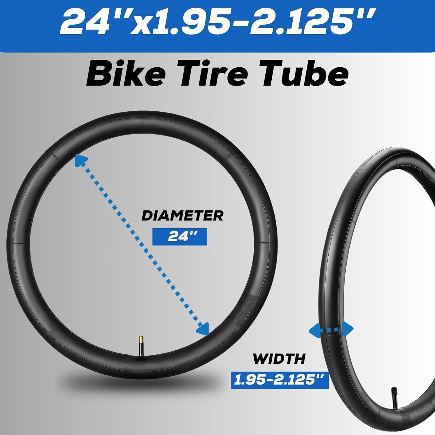 Size Compatibility: Corki Cycles 24 bicycle tubes are specifically designed for 24-inch tires with dimensions such as 24 x 1.95-2.125, Please check your tire sidewall for compatibility. (Fits sizes including 24x1.95, 24x2.0, 24x2.1, 24x2.125, 50-507 54-507).