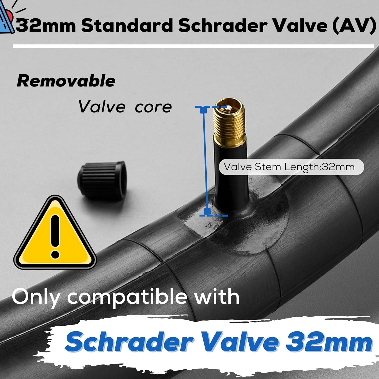 Schrader Valve 32mm Length with Removable Core: Corki Cycles 24 bike tube is equipped with a dependable Schrader valve featuring a 32mm length and a removable core, facilitating effortless inflation and ensuring compatibility with a variety of bike types.