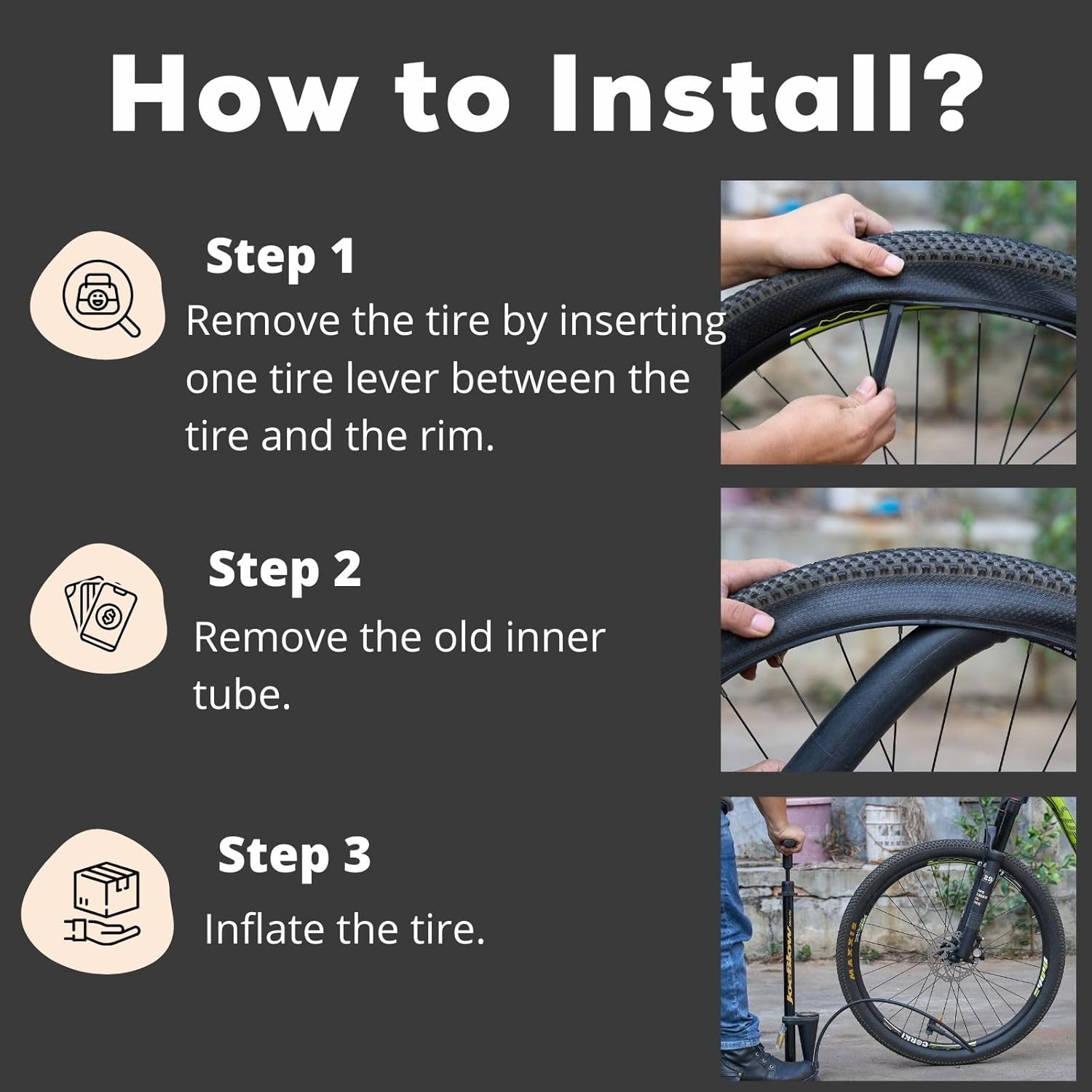 Installation is easy, and to make things even more convenient, we include 3 bike tire levers in the package. Get back on your bike quickly and enjoy a smooth ride with our 24" Bike Tubes.