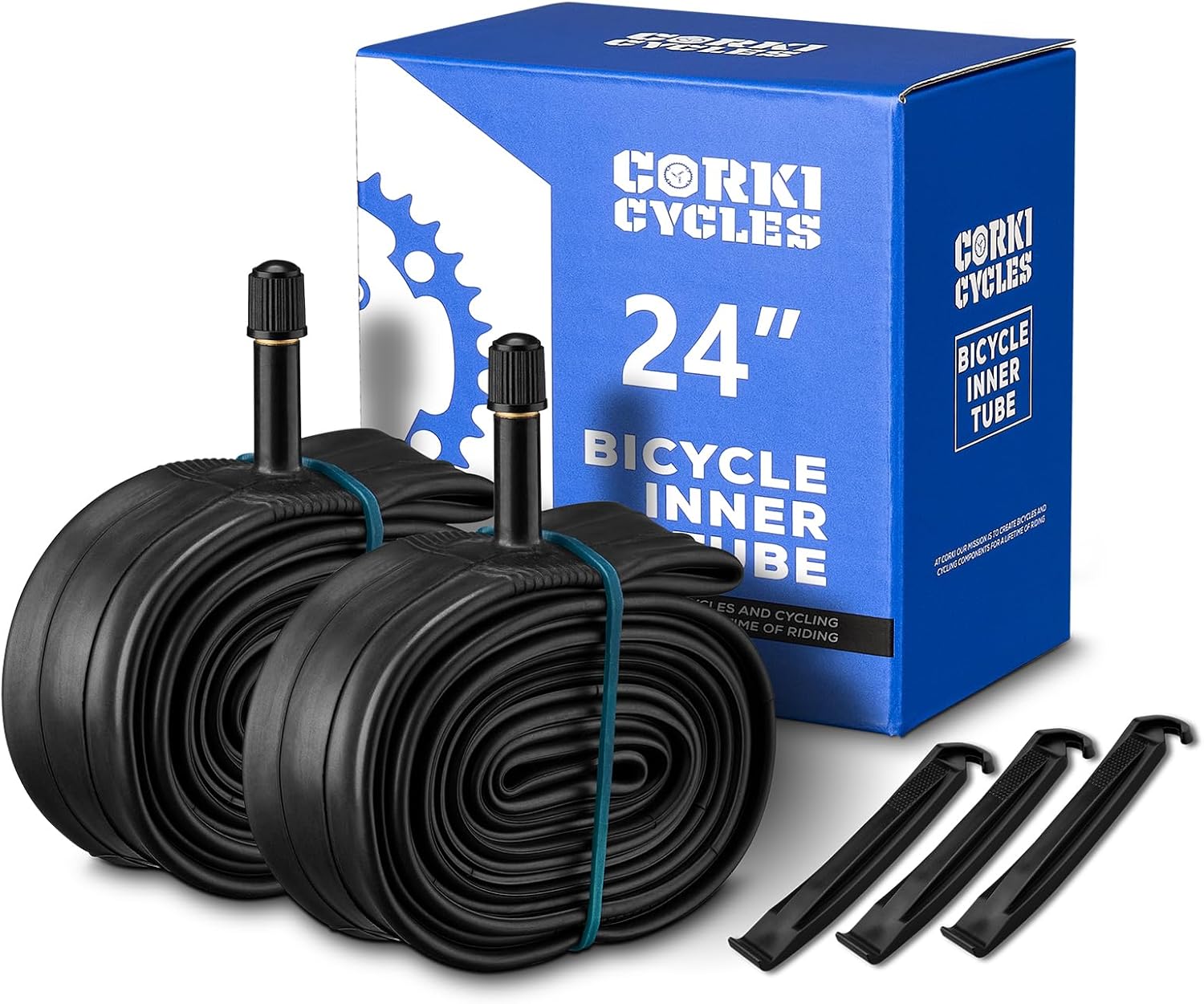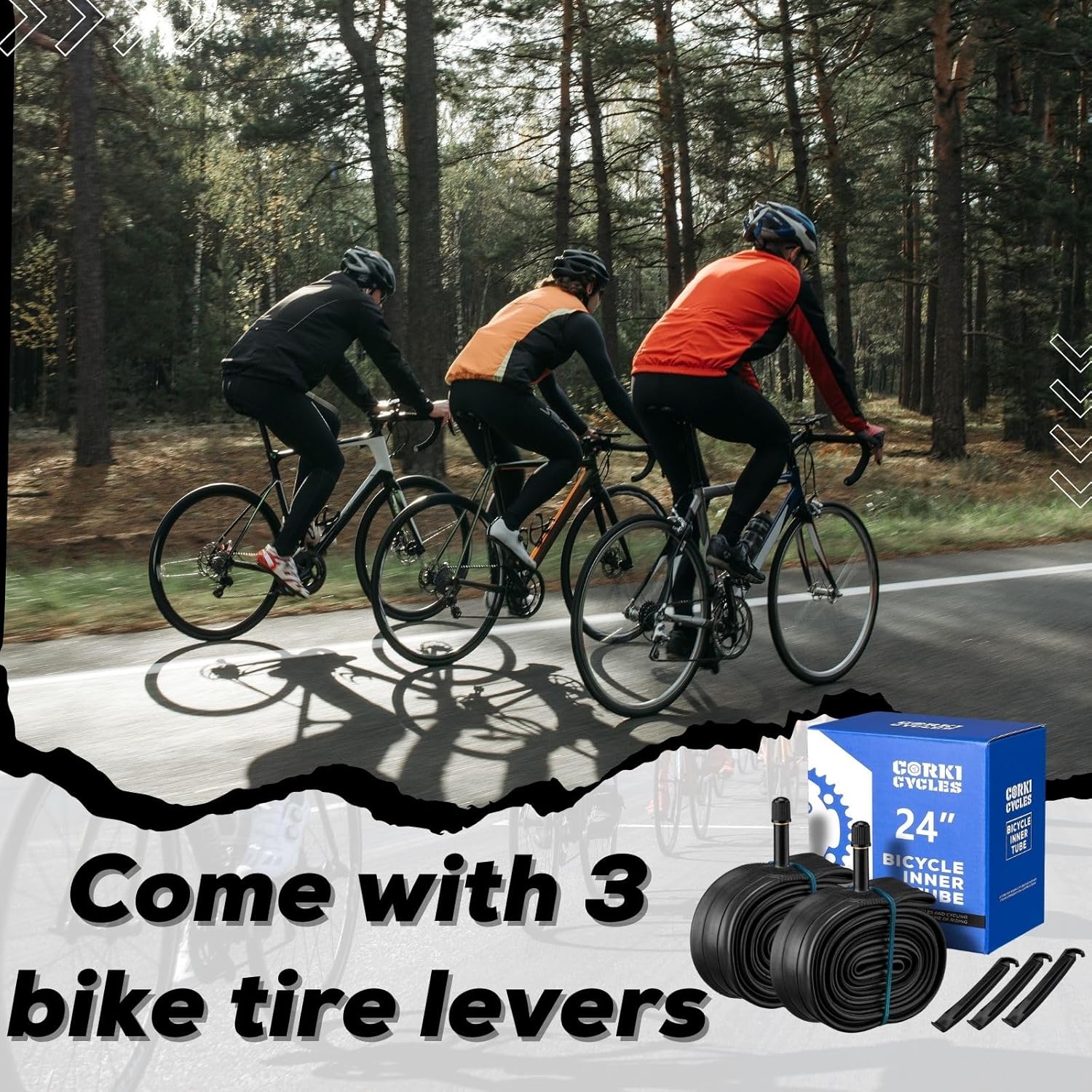 Material and Durability: Corki Cycles 24" bike tire tube is made from heavy-duty butyl rubber, ensuring longevity and resilience. Suitable for various 24-inch bike types.