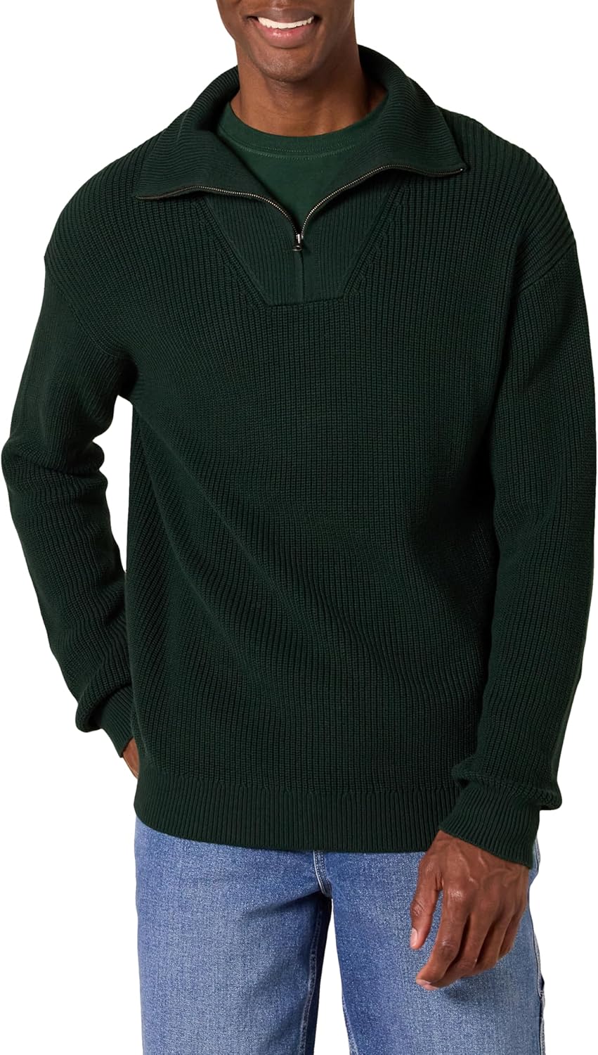 Amazon Essentials Mens Quarter-Zip Rib-Knit Relaxed-Fit Sweater