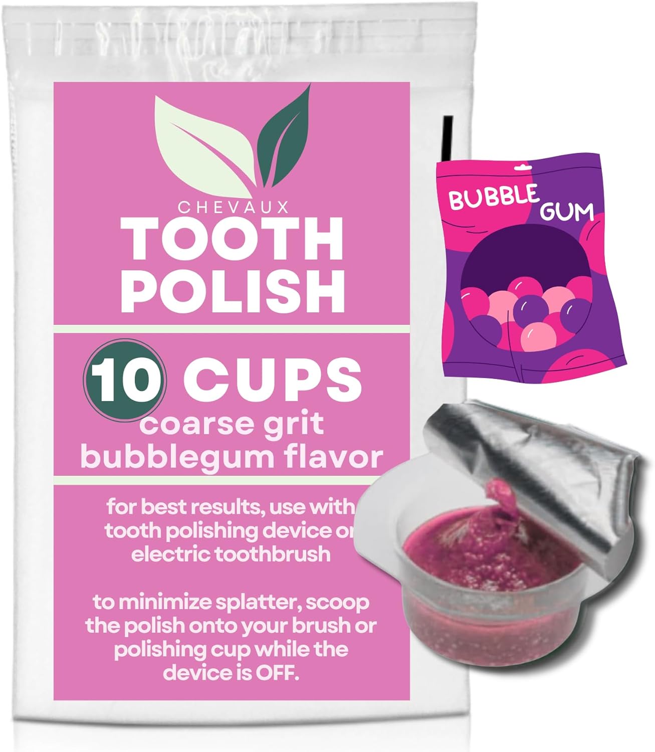 CHEVAUX Professional Strength Tooth Polish - Coarse Grit Teeth Polish Pack of 10 (Bubblegum)