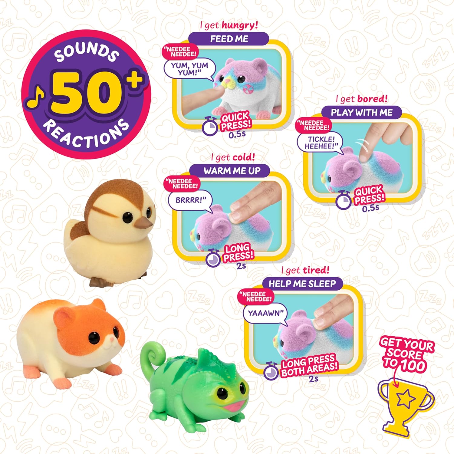Collectible Fun: Collect all 13 soft, flocked NeeDee interactive pets for kids such as turtle or chameleon, bringing out their unique charm and personality; these interactive toys for kids offer a chance to win the limited edition golden duck