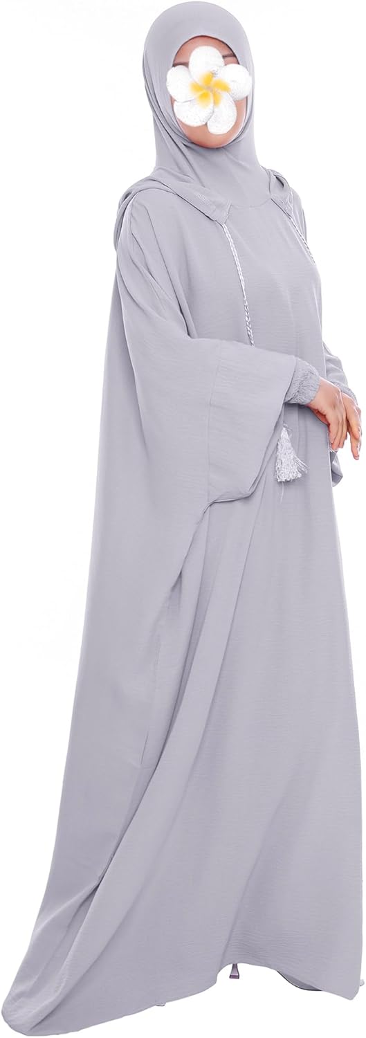 khalat Muslim Prayer Dress Abaya Solid One-Piece Hoodie Abaya Dress for Women Long Maxi Dress Islamic Dubai Jilbab