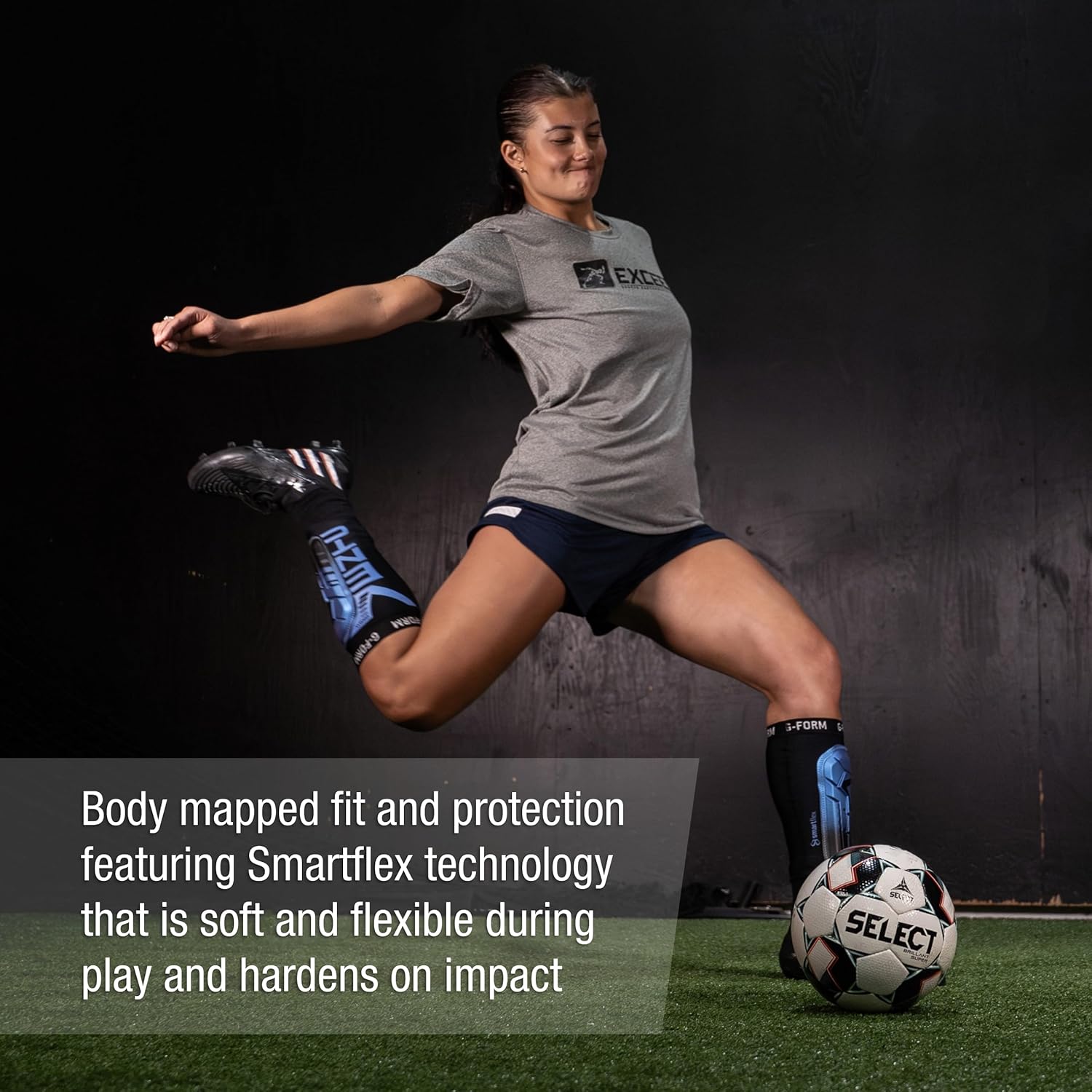 SmartFlex Technology for Sports: G-Form shin guards feature impact-absorbing pads that stay flexible while running and harden upon impact for optimal shin protection