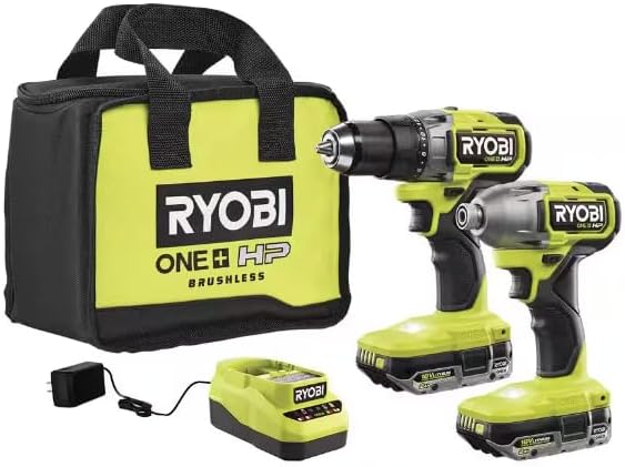El Kit Combo de 2 Herramientas RYOBI 18V ONE+ HP Sin Escobillas incluye - 1 X Taladro/Driver de 1/2 in. - 1 X Impact Driver de 1/4 in. - 2 X 18V 2.0 Ah Baterías de Alto Rendimiento - 1 X Cargador - 1 X Bolsa de Herramientas.