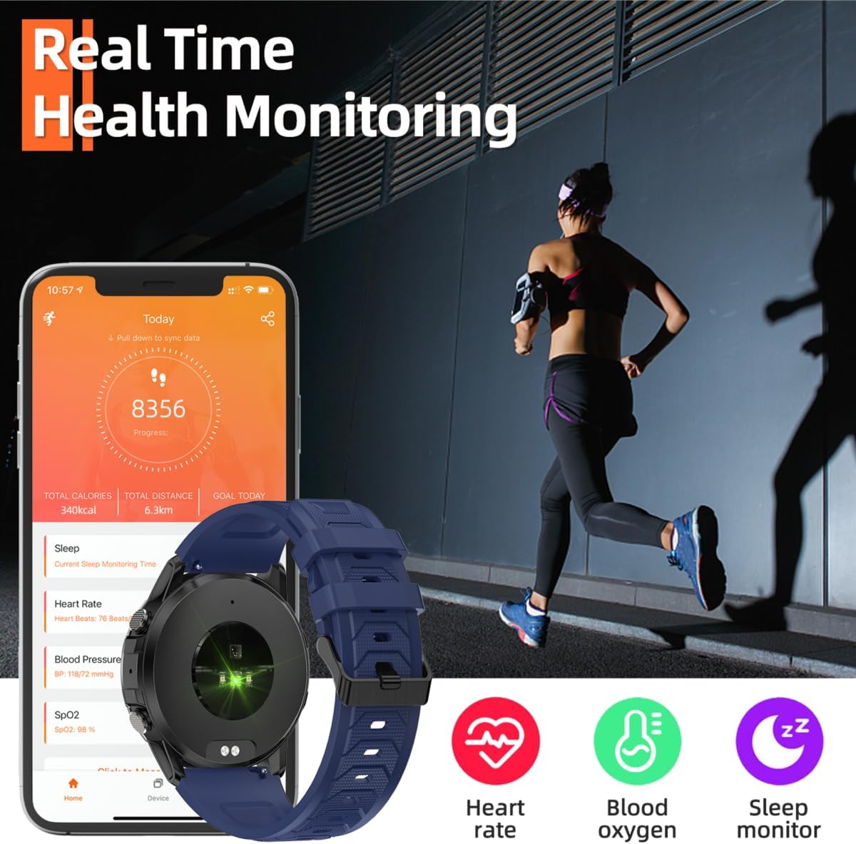 24-Hour Health Monitoring: This high-performance smart watch can continuously monitor your health status (heart rate, blood oxygen saturation, blood pressure), as well as record your sleep status (deep sleep, mild sleep, awake) and analyze your sleep quality. A fitness sport watch can help you better understand your health status.