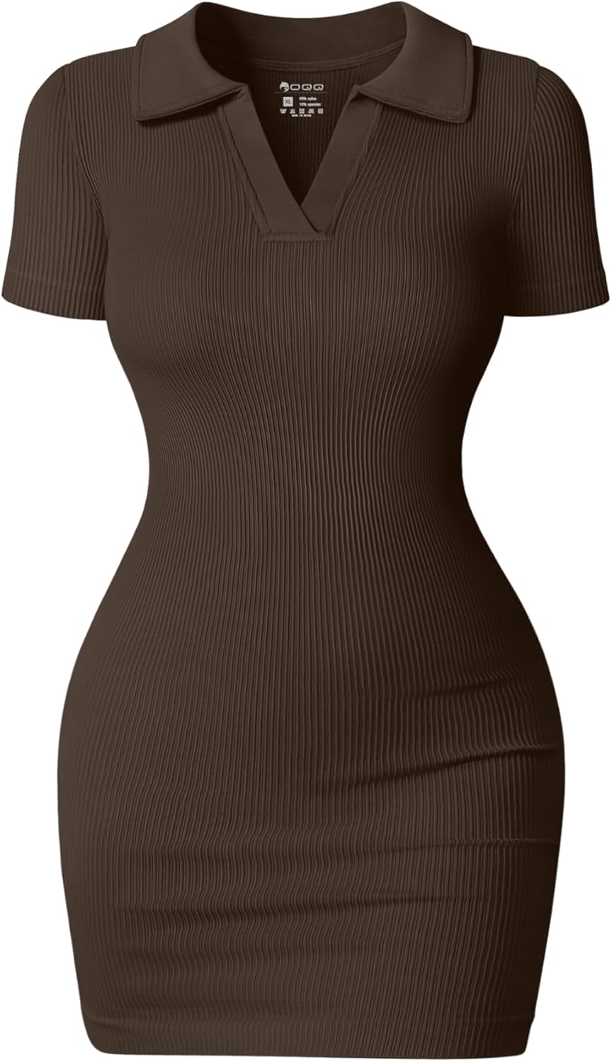 OQQ Women's Mini Dresses Sexy Ribbed Short Sleeve Tummy Control Bodycon Mini Dress