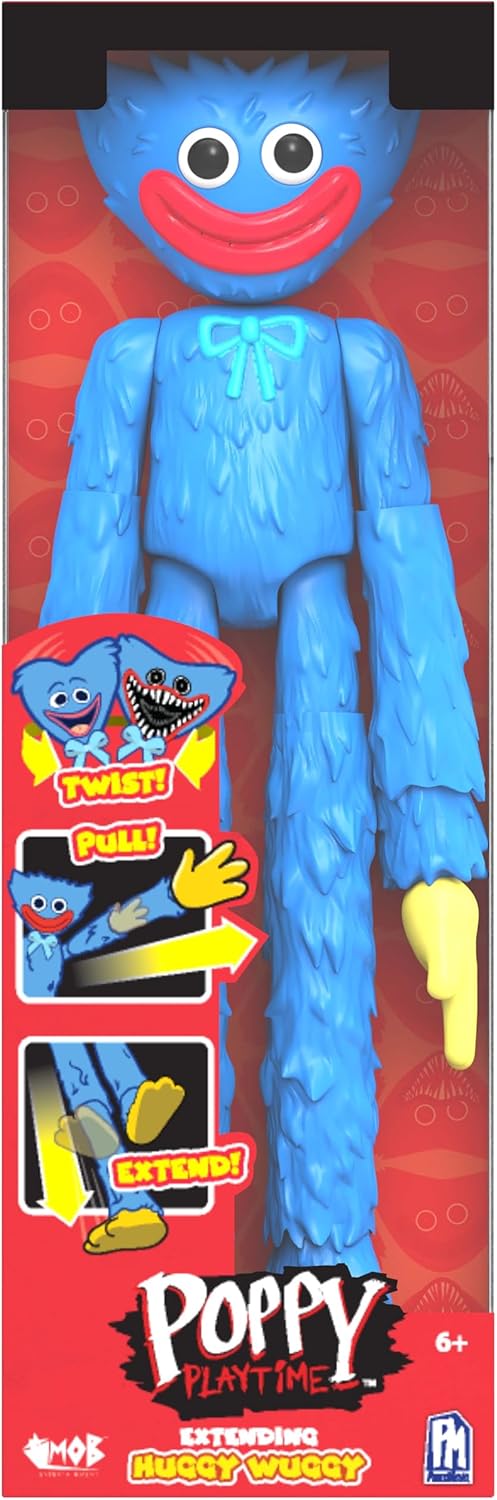 Poppy Playtime – Figura Deluxe de Huggy Wuggy con Cara Cambiable Extensible (Figura de Acción de 12" con Miembros Extensibles y Cabeza Giratoria, Serie 2)