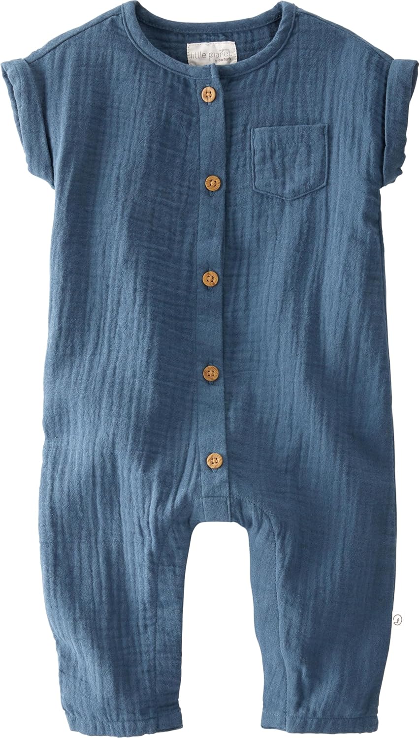 Stay close to nature in this soft, textured jumpsuit. Made with double-layered certified organic cotton gauze and natural buttons down the front, this one piece is thoughtfully designed with neutral colors and simple style for a sustainable look that works for baby girl, baby boy, and every hand-me-down in between. Crafted in the purest organic fabrics and sustainable materials, Little Planet is a return to simplicity. Thoughtful essentials and timeless pieces to gift or to hold on to.