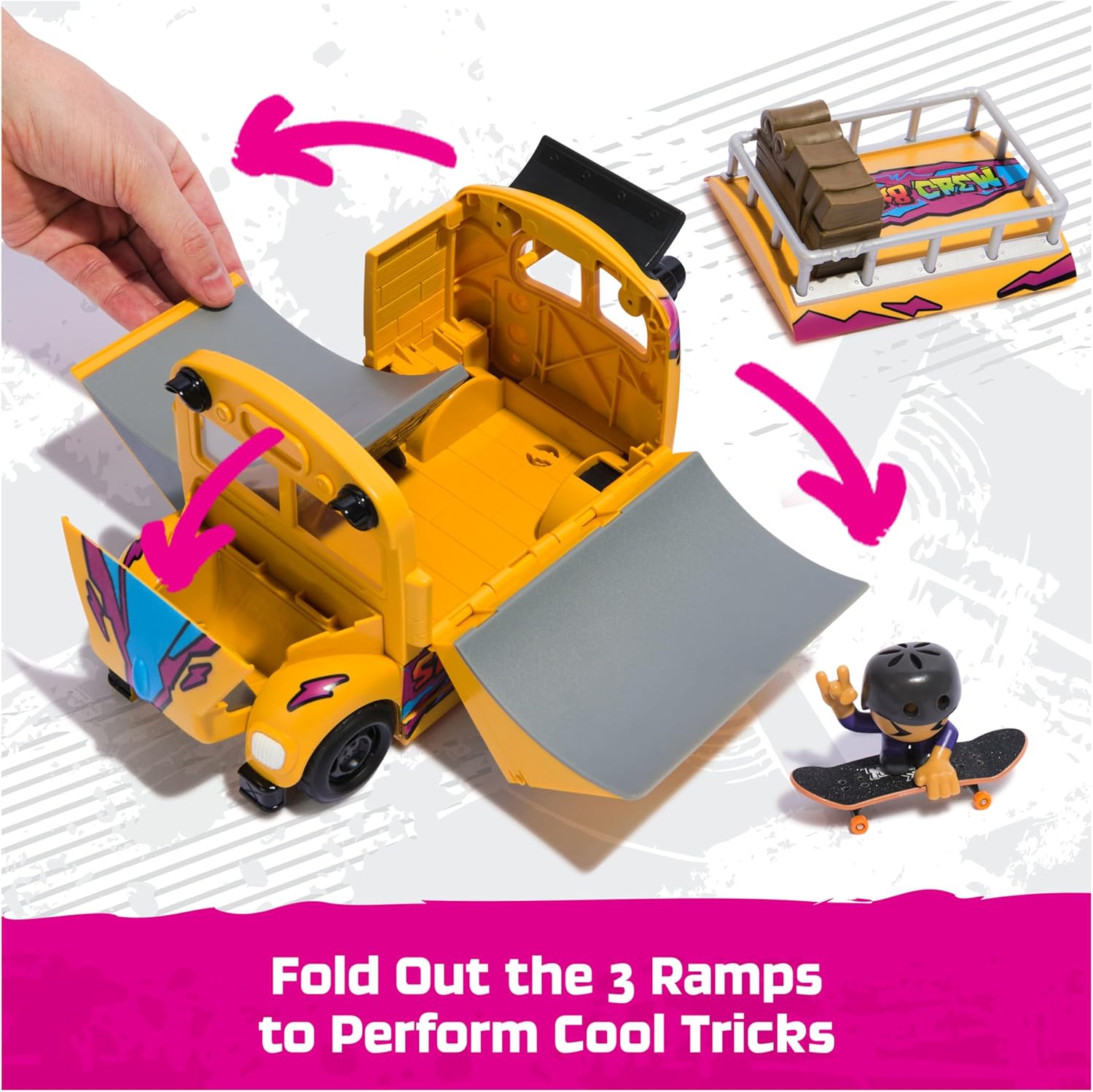TECH DECK Sk8 Crew 2-in-1 Transforming Ultra Sk8 Bus & Storage with Fingerboard & Figure, Collectible Mini Skateboards, Kids Toys for Ages 5 and up