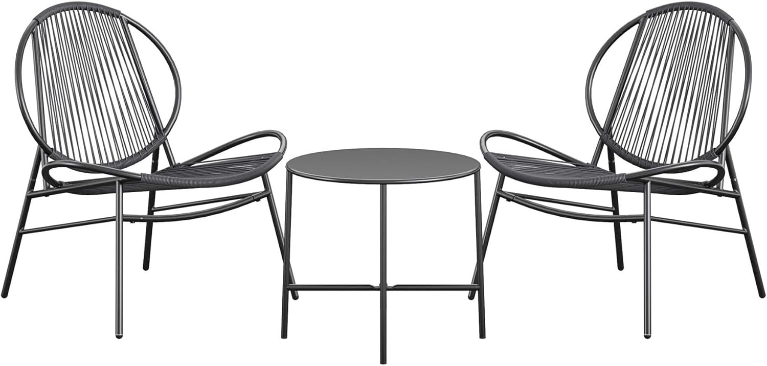 Novogratz Poolside Gossip, Marilyn 3 Piece Resin Weave Chat Set, Charcoal