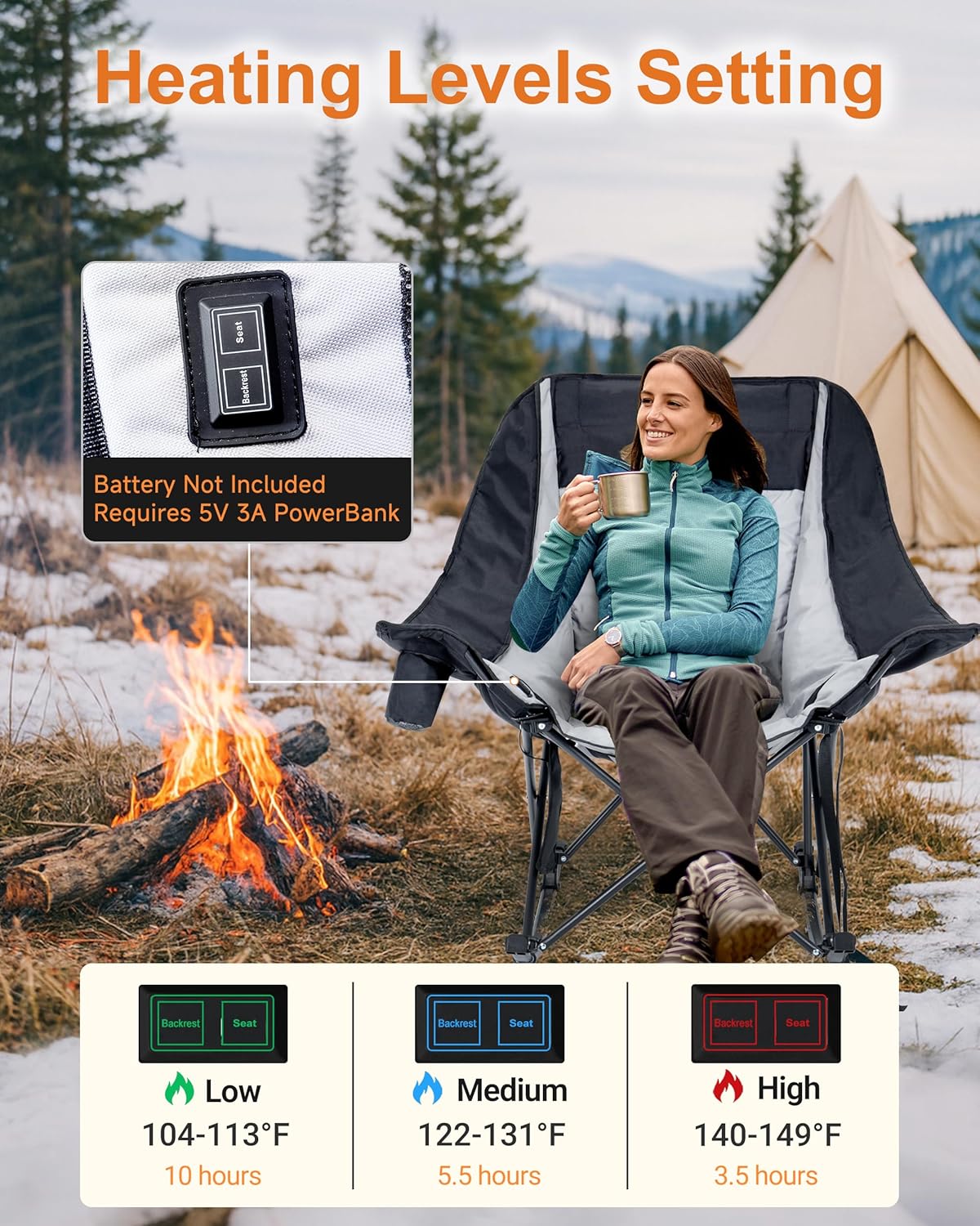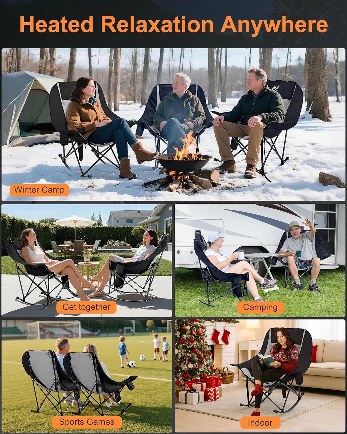 Slsy Heated Rocking Camping Chair, Portable Folding Oversized Padded Outdoor Rocker for Adults, 3 Adjustable Heating Levels, Quick Setup, Compact Storage, Lawn & Patio, Carry Bag Included