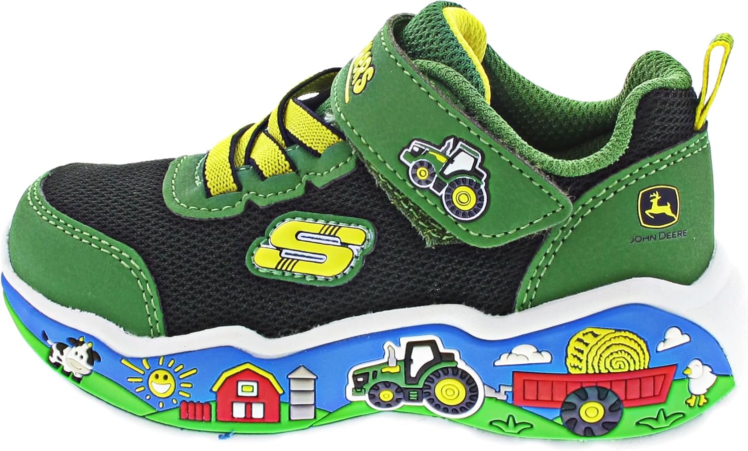 Your little ones will have fun in comfort wearing John Deere x Skechers Play Scene. This easy-wearing themed design features a mesh and synthetic upper with stretch laces, adjustable instep strap, and a playful midsole with themed graphics.