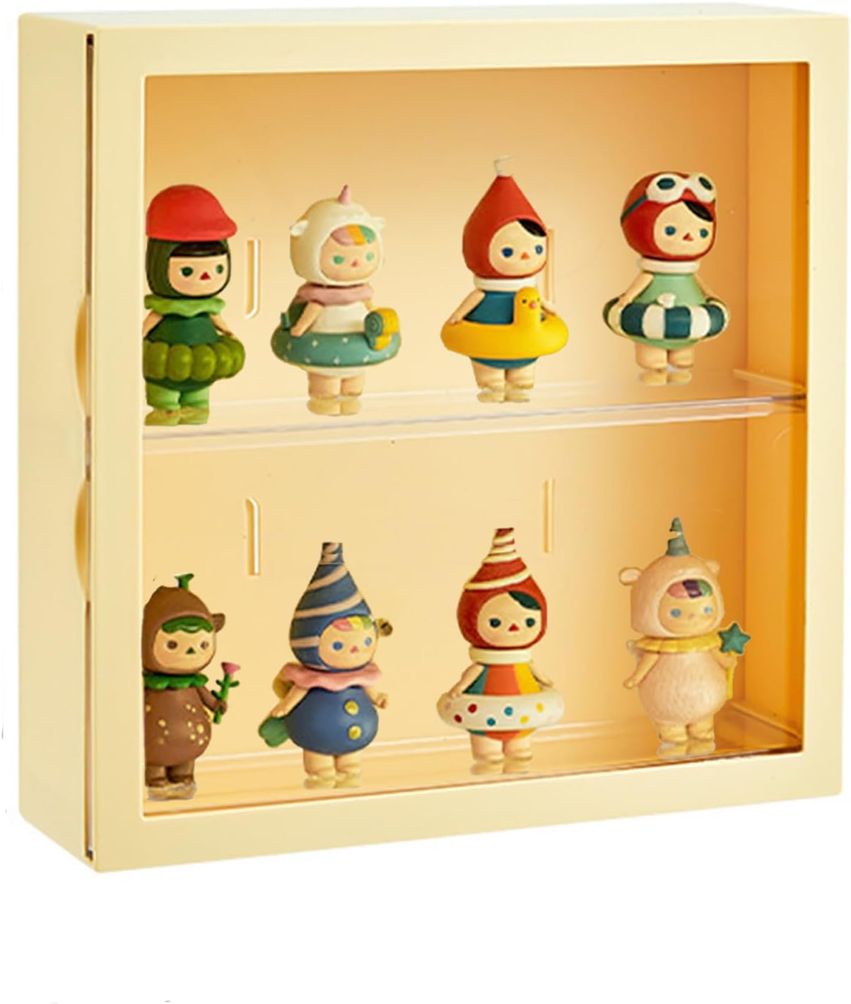 Clear Display Case for Figures, Square Wall-Mounted Doll Storage Box, Adjustable Display Stand with Door Dust and Moisture Proof Suitable for Lego Collectibles Action Figures Pop Mart (Yellow)