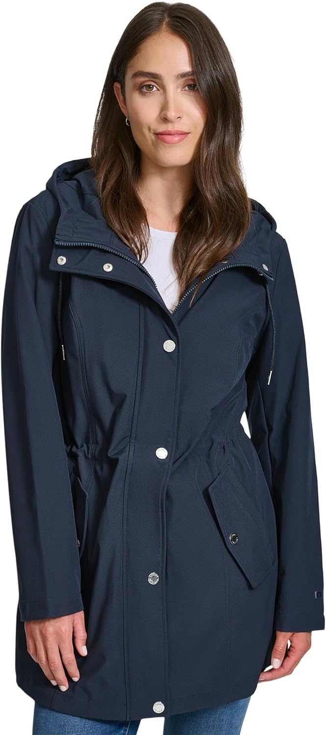 Chaqueta de lluvia ajustable de cintura transitoria con capucha para mujer Tommy Hilfiger de softshell
