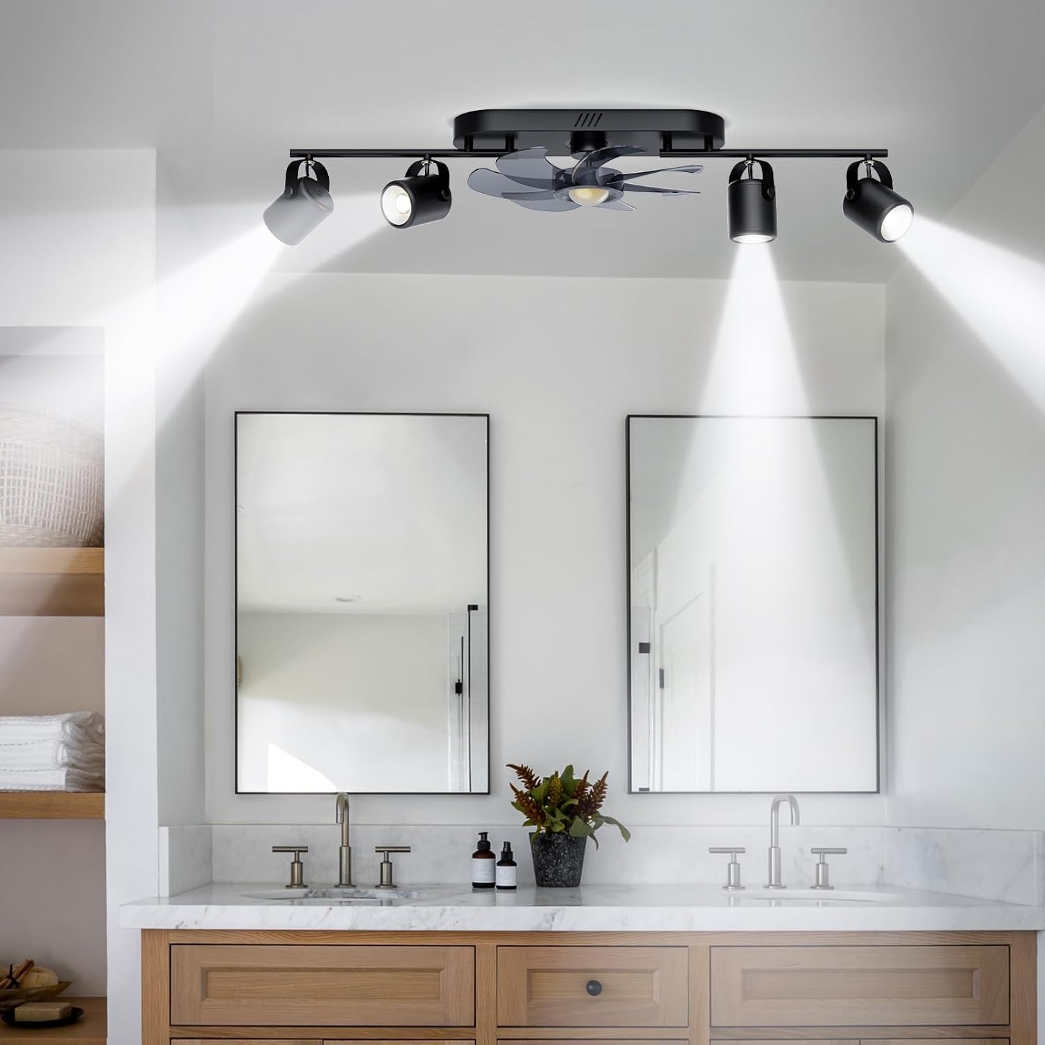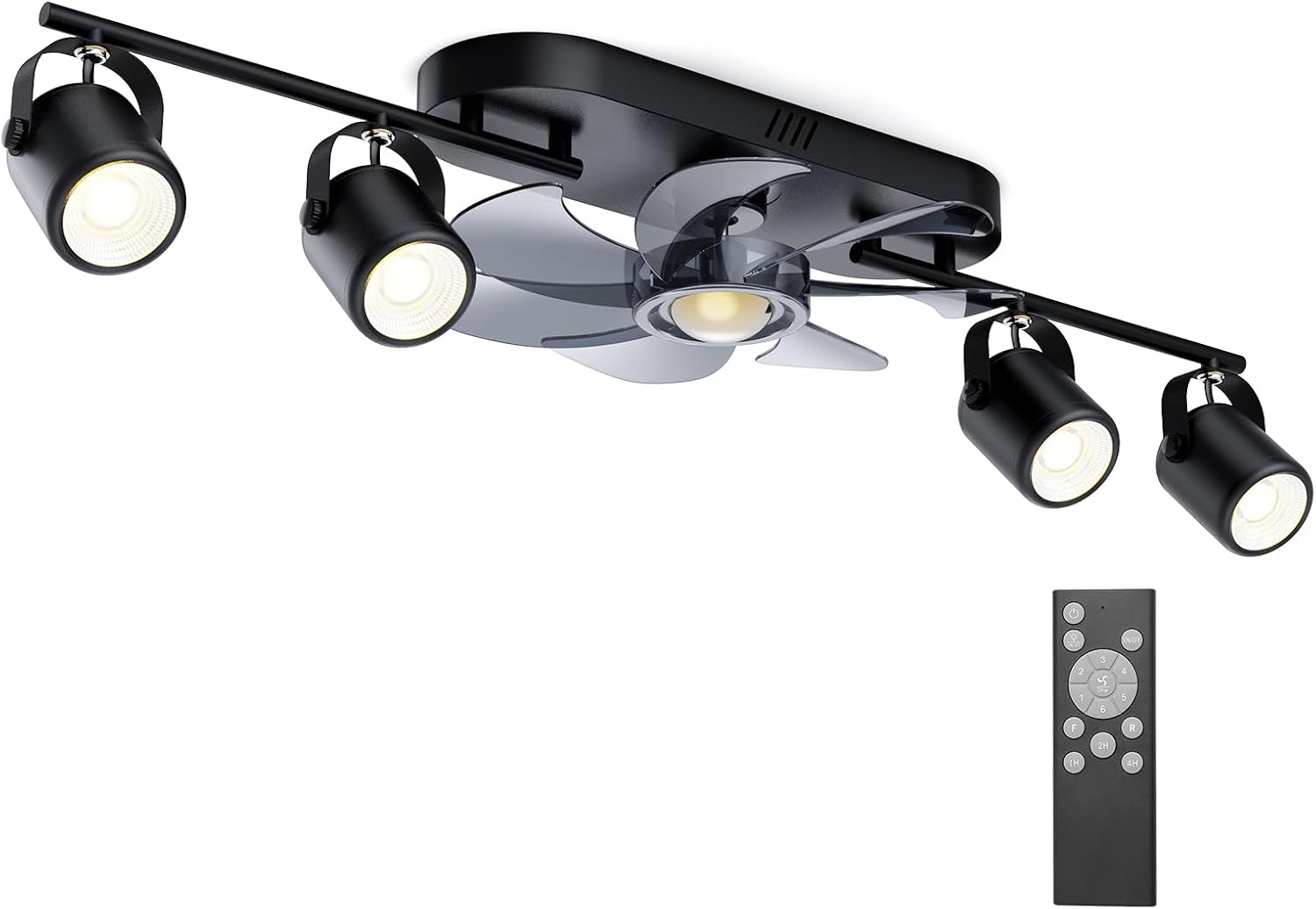 [LED Track Lighting]: 3000K warm white light.This ceiling fan light with 4 flexible adjustable track lights allows you to customise the lighting angle to meet the lighting needs of different rooms.