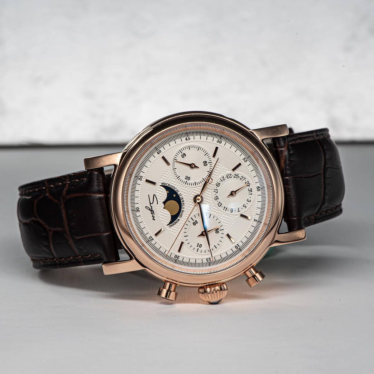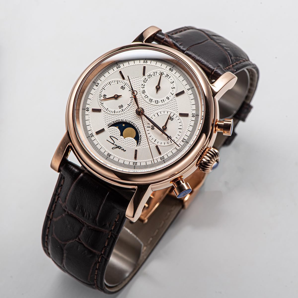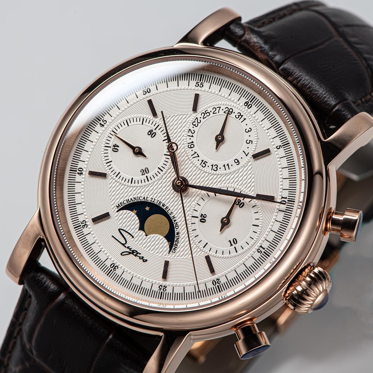 Sugess MoonPhase Master SU1908GWX Gold Swan Neck 40mm ST1908 Mechanical Chronograph Mens Wrist Watch Seagull 1963