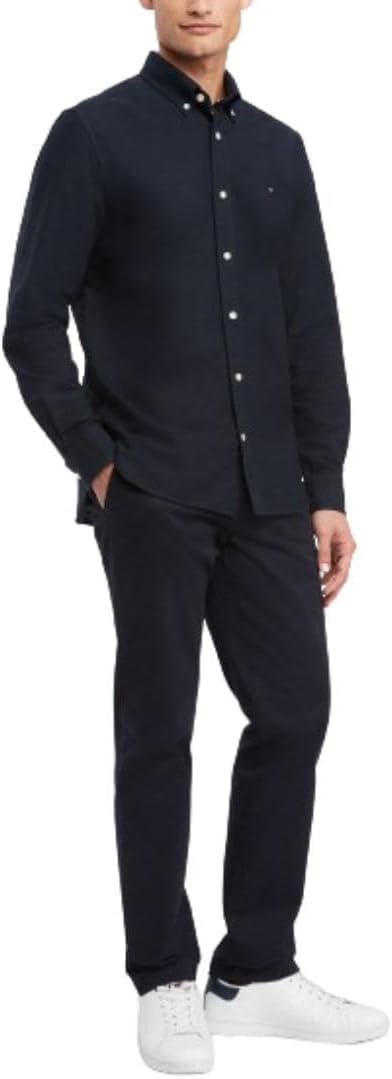 Highlight your timeless style with this long sleeve button down shirt from Tommy Hilfiger . Men's button down shirt with a button-down collar . Tommy Hilfiger shirt for men with a button-down front closure . Long sleeve button down shirt with a front pocket and embroidered logo flag . This long sleeve button-down shirt from Tommy Hilfiger will be perfect for any occasion