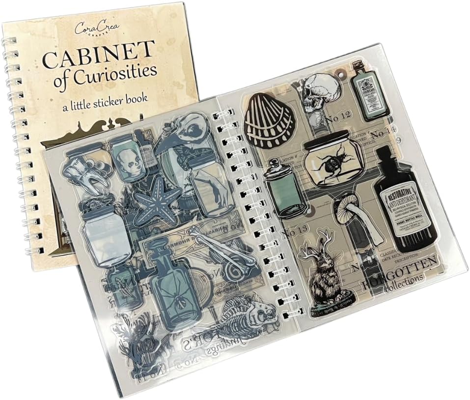 ✨【HIGH-QUALITY STICKER BOOK】Our Cabinet of Curiosities Sticker Book features high-quality stickers that are carefully made to last. The colors are bright, and the details are clear, ensuring your creations will look amazing and withstand the test of time. Craft with confidence, knowing you have the best quality stickers from Cora Crea Crafts to bring your cabinet of curiosities visions to life!