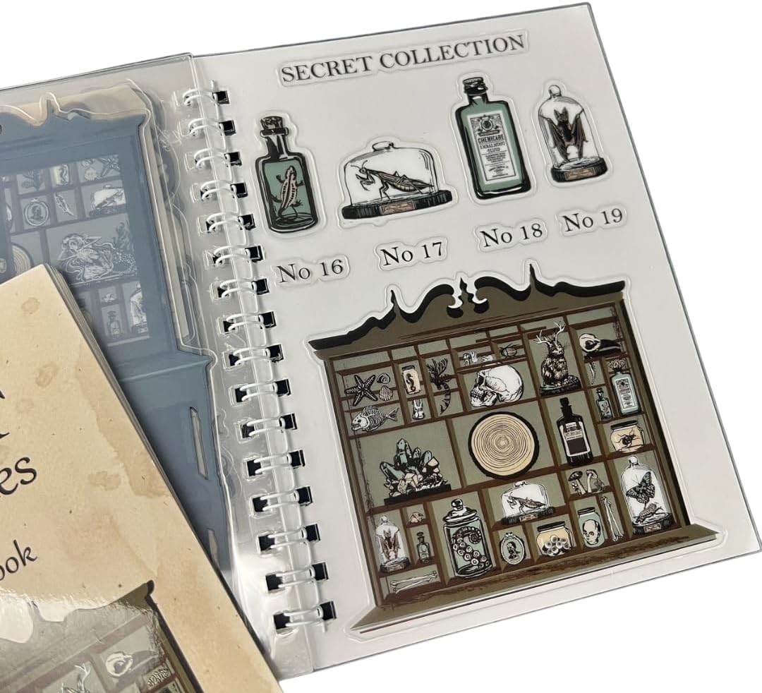 ✨【CABINET OF CURIOSITIES THEME】 This journal stickers special is its ability to tell a story on its own. It includes 10-Pages of pre-cut stickers printed on transparent sheets. Each page includes vintage designs with jars, specimen, tags, cabinets, and more. Each page tells a unique story, bringing a touch of vintage charm to your crafts. Whether you're enhancing a scrapbooking, journaling, crafts, and personalizing planners, decorating, and calendars. or DIY project.