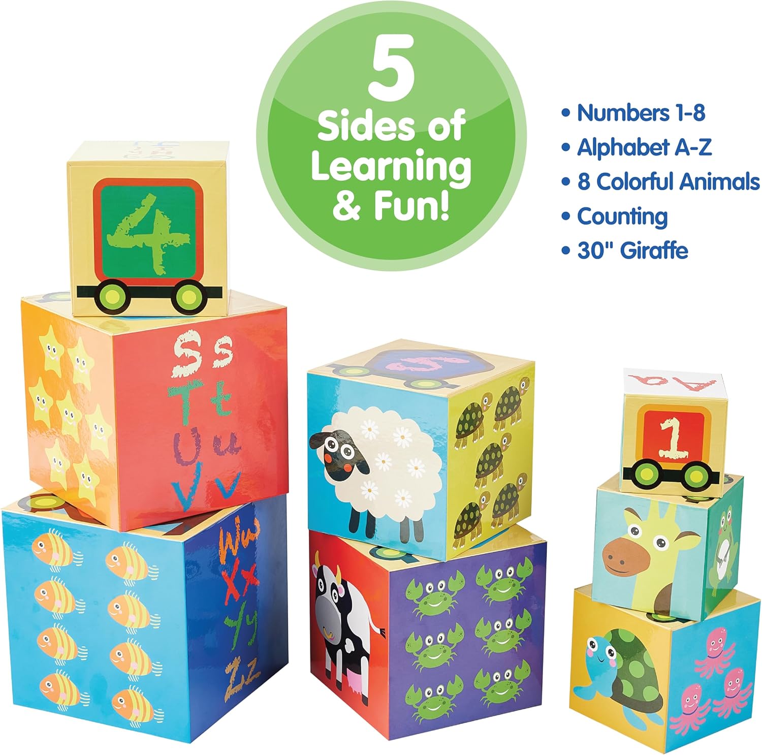 Kidoozie Stack N' Learn Cubes - Build a 30 Inch Giraffe with These Colorful Learning Cubes for Ages 2+ - Stack, Nest, Sort, & Learn Your ABCs & 123s!