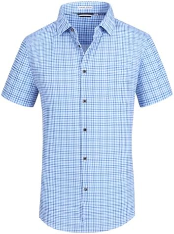 Alex Vando Mens Button Down Shirts Wrinkle Free 4-Way Stretch Short Sleeve Business Casual Shirt