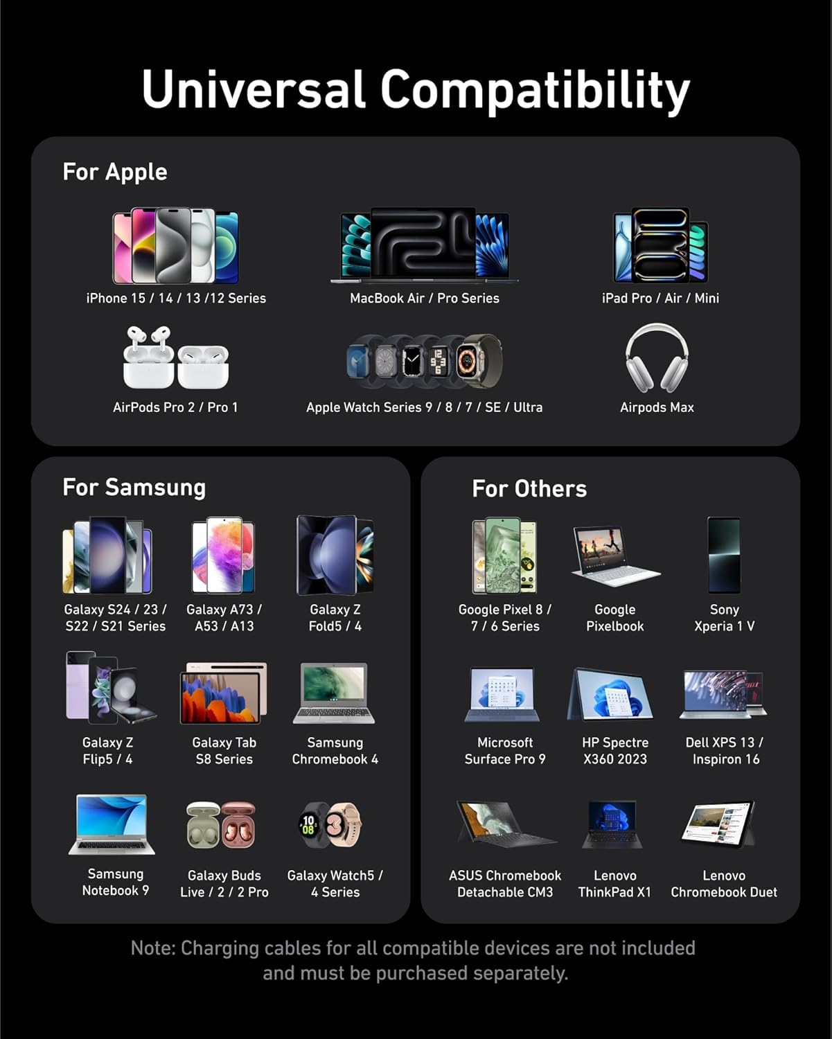 6 Dispositivos, 1 Cargador: Alimente 6 dispositivos simultáneamente en un lugar conveniente, asegurando que toda su tecnología esté lista y completamente cargada.