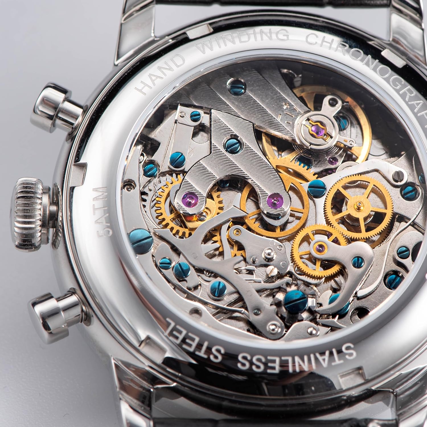 Brand: Sugess Condition: New with tags Series: Chrono Heritage Reference: S438.03.S Function: 12 Hours and seconds Indicator, 30 Minutes Chronograph Features: Column Wheel Chronograph, Blue steel screws and Exhibition Case Back Cover Diameter: 41mm Thickness: 13mm Glass Material: Sapphire Crystal Case Material: 316L Stainless Steel Band: 316L Stainless steel Band Movement: Manual winding Caliber: Genuine Seagull ST1906 Jewels: 21 Vibration: 3 Hz (21,600 BPH) Power Reserve: 45 Hours Water Resistant: 5ATM (50 Meters) English Instruction Manual: Yes