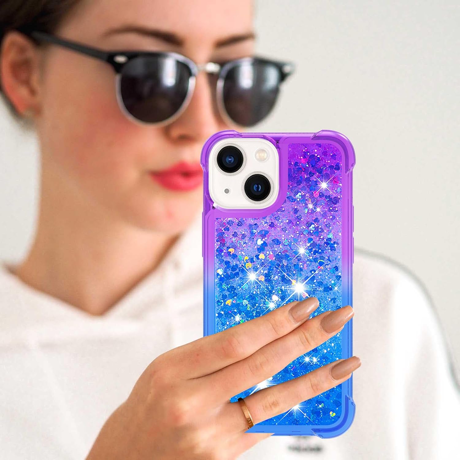 [Luxury Bling Glitter Liquid Case]: for iPhone 13 phone case/iPhone 14 phone case for girls women girly. The Liquid floating sparkle cute love heart and glitter quicksand sequins can flowing freely inside when you move cell phone. The case not only beautiful, but also can bring much more fun for you and your friends. Combine fashion color with sparkles design make phone more glamorous and eyes-catching. Slim and lightweight design is easy to hold ensure a comfortable grip and secure.
