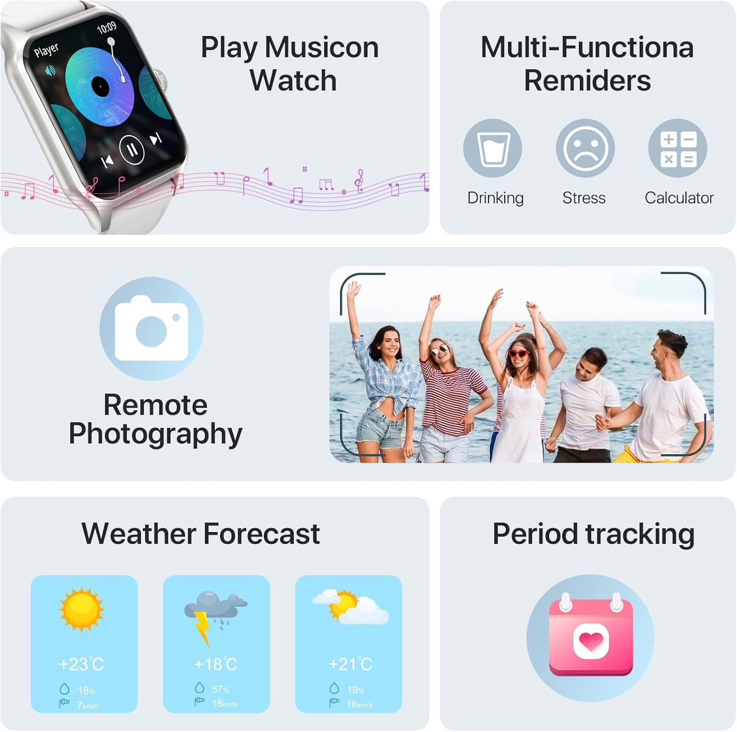 Stay Connected Anywhere - The Walkerfit A1 PRO smart watch ensures you're always connected on the go. Equipped with built-in speakers and a microphone, effortlessly handle calls and messages wherever you are. Thanks to Bluetooth 5.3, this iOS/Android phone compatible womens watch seamlessly syncs with your iPhone, keeping you up-to-date with notifications from social media, texts, and apps like Facebook, WhatsApp, and Twitter. Don't miss a beat with this smartwatch for women.