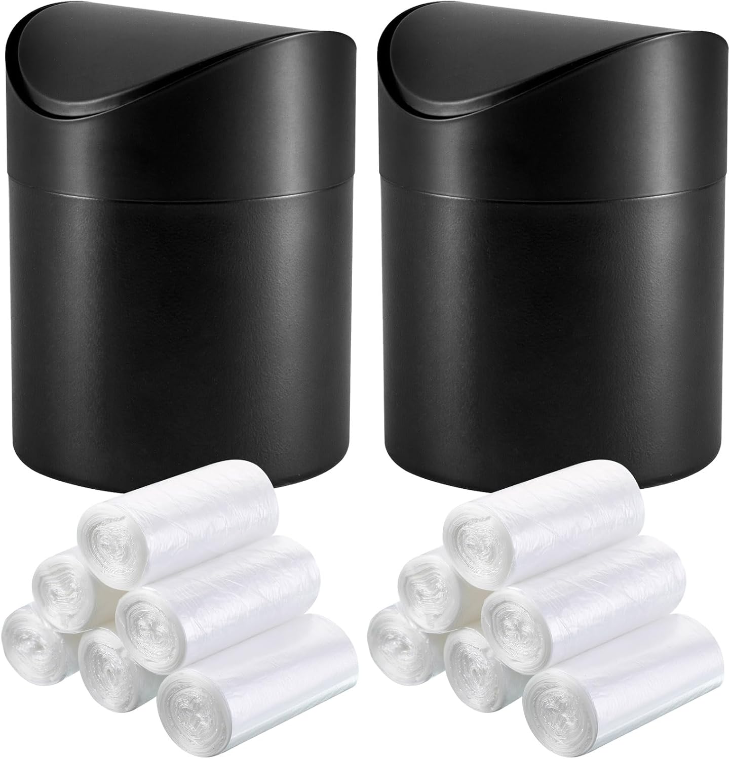 Package Includes: 2 desk trash cans with lid and 12 rolls of trash bags, giving you enough stock for day to day use or to share with friends and family; These can assist others to maintain an organized and clean desk environment; This set also serves as a practical and thoughtful gift to loved ones