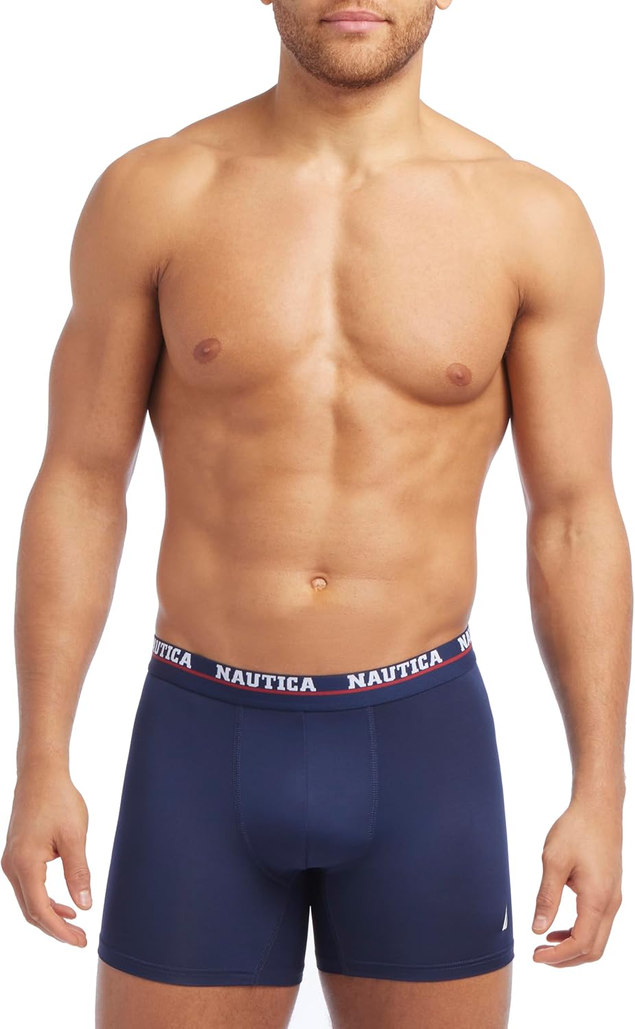 Experience ultimate comfort with Nautica Limited Edition Micro Stretch Boxer Briefs. Featuring a Polyester/Spandex construction with super soft, moisture wicking, lightweight fabric and the perfect amount of stretch. Contour Pouch for added support with elastic waistband for a smooth secure fit and signature Nautica Logo. Perfectly tailored with a No-ride-up fit and enhanced breathability to keep you cool and comfortable for long lasting wear. Nautica Boxer Briefs Men's Underwear offered in a 4-Pack.
