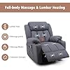 Rocker Swivel Recliner Chair for Adults, Overstuffed Large Manual Recliner Glider with Massage and Heat, Comfy Soft Fabric Living Room Reclining Sofa Chair(Technical Grey)