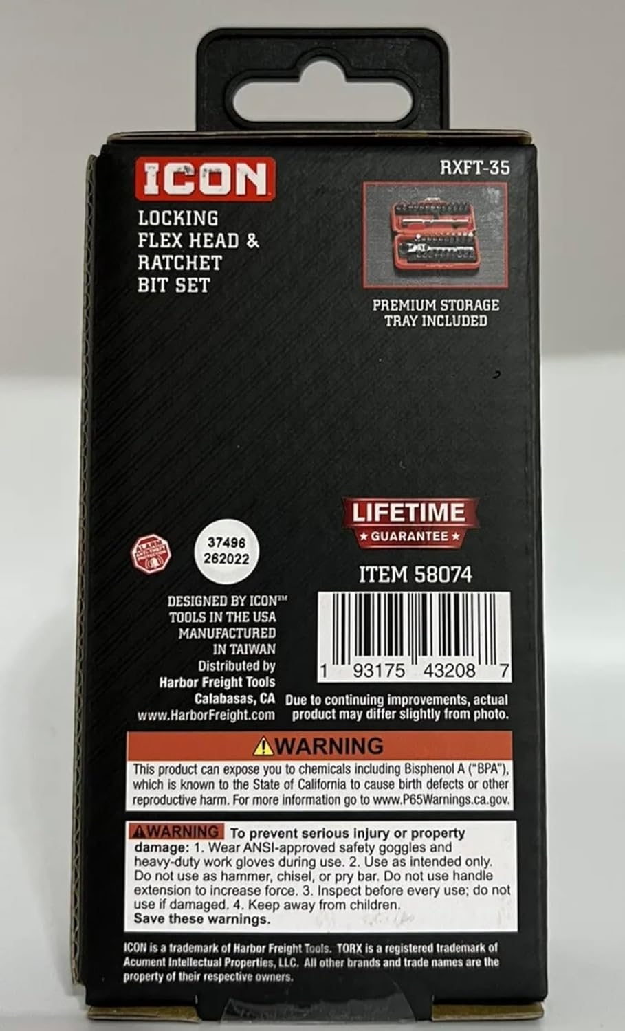 Generic ICON Locking Flex Head Ratchet and Bit Set 35-Piece, Silver