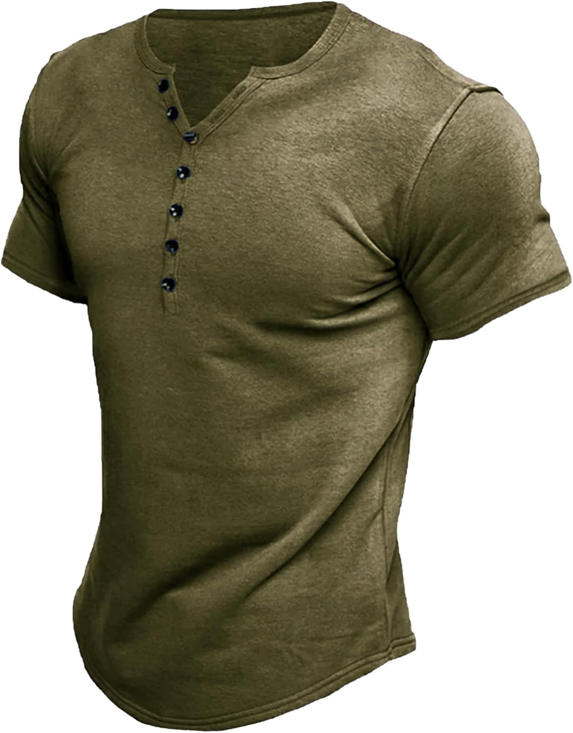 Comdecevis Men's Henley Shirts Short Sleeve Regular Fit Shirts Vintage Casual Button V Neck T-Shirts for Men