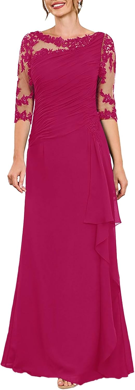 Clixsy Mother Dresses Chiffon Ruched - Lace Appliques Ruffles Mother of The Bride Gowns Long