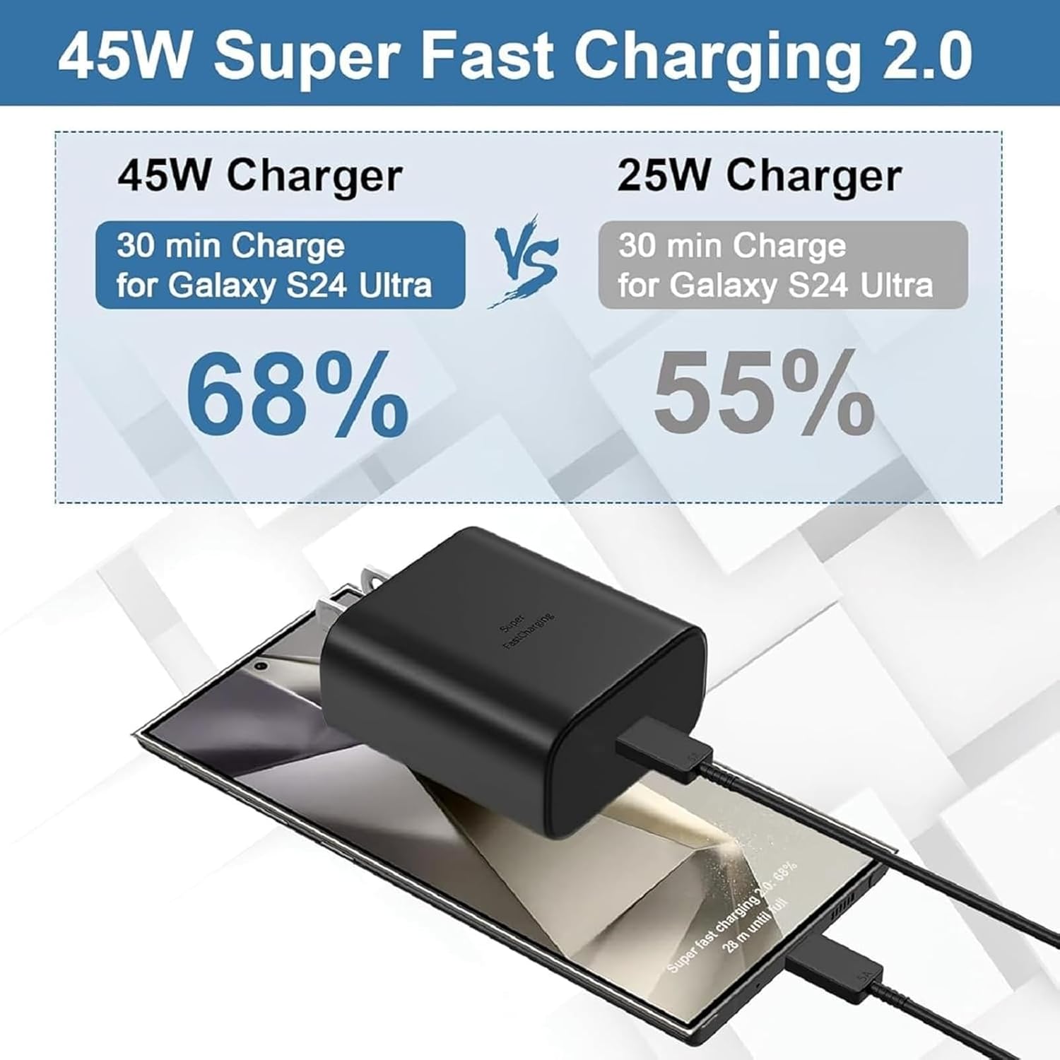 Cargador Rápido Samsung de 45W Tipo C Carga Rápida Samsung Cargador Rápido con Cable USB C Compatible para Galaxy Tab S9 S10 A9 S25 S24 S23 S22 S21 S20 Plus,Ultra,FE,Z Fold,Z Flip,Note20/10,A16 A15 A25 A55 A56 C55