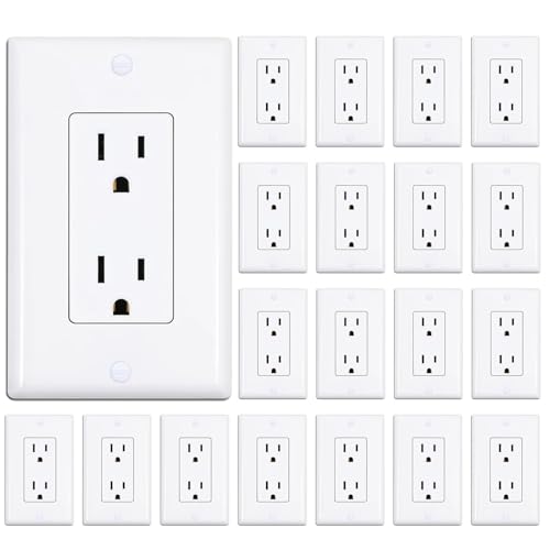 ThunderWay Decorator Receptacle Outlet with Wall Plate, Non-Tamper-Resistant Electrical Outlet, 15 amp Outlet, Self-Grounding, UL Listed, White (20 Pack)